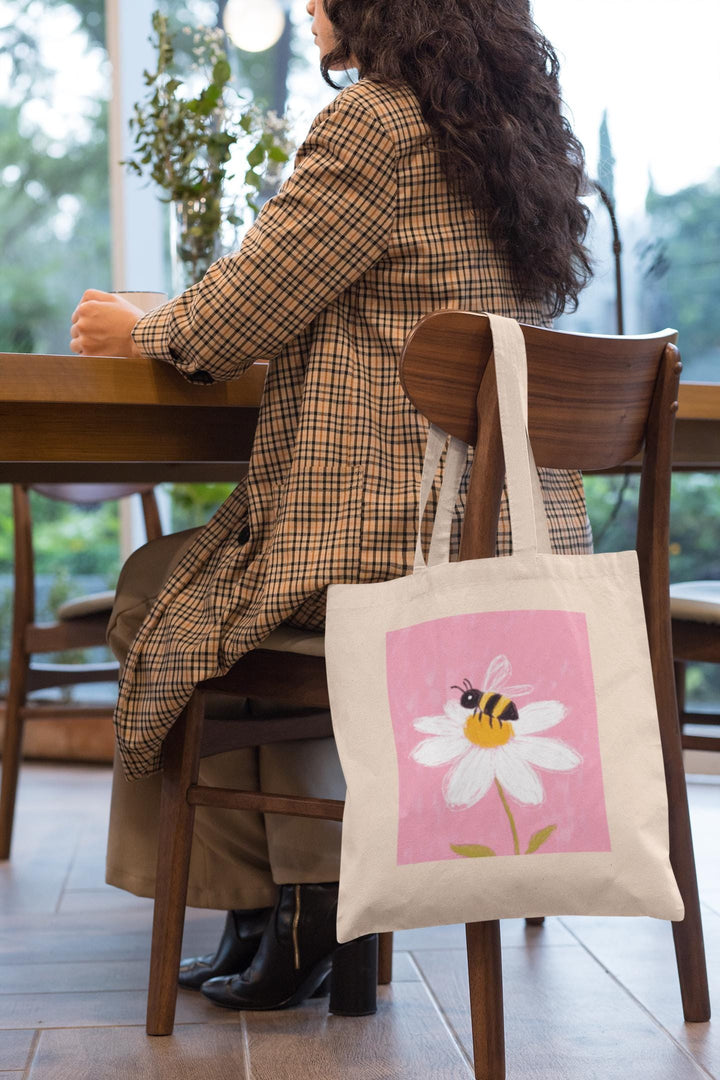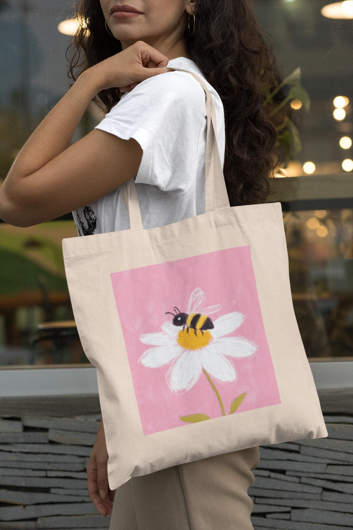 Add a touch of sweetness to your day with the Bee Flower Pink Tote Bag—where style and nature meet.