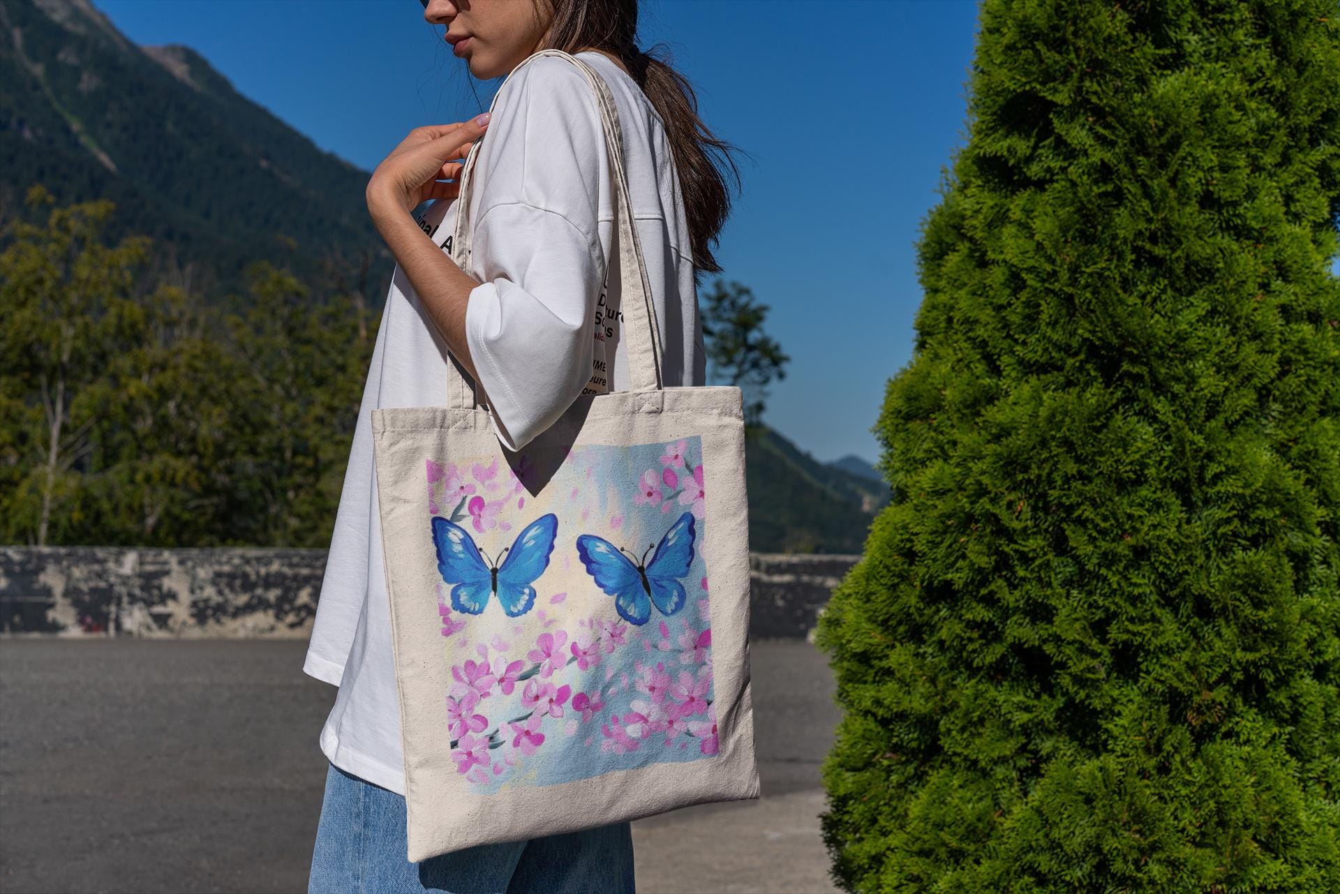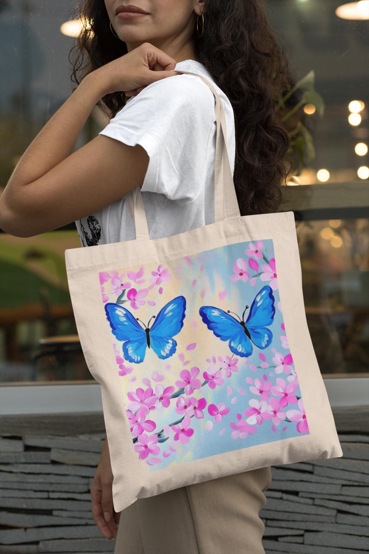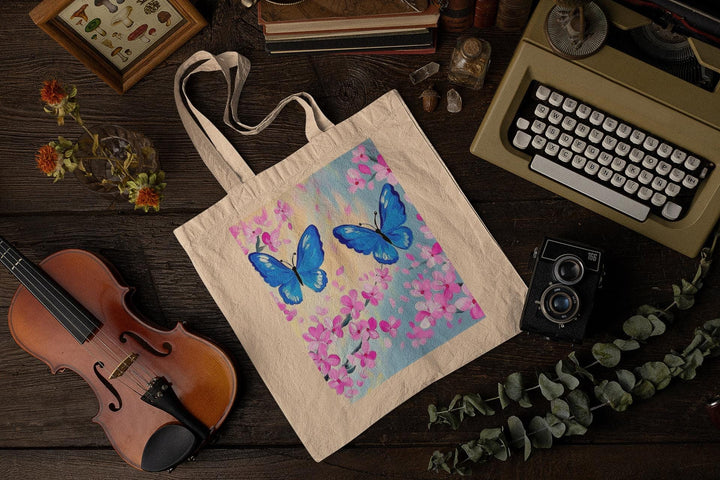 Delicate and dreamy, the Blue Butterflies Cherry Blossom Tote Bag captures the magic of spring with fluttering blue butterflies dancing among blooming cherry blossoms. Perfect for daily errands, book lovers, or thoughtful gift-giving, this tote blends soft elegance with practical style.