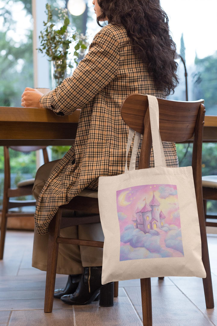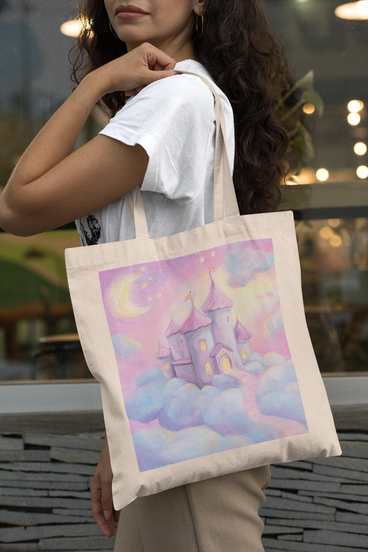Add a sprinkle of magic to your daily routine with the Castle in the Clouds Pink Tote Bag—where fairytale charm meets everyday practicality.