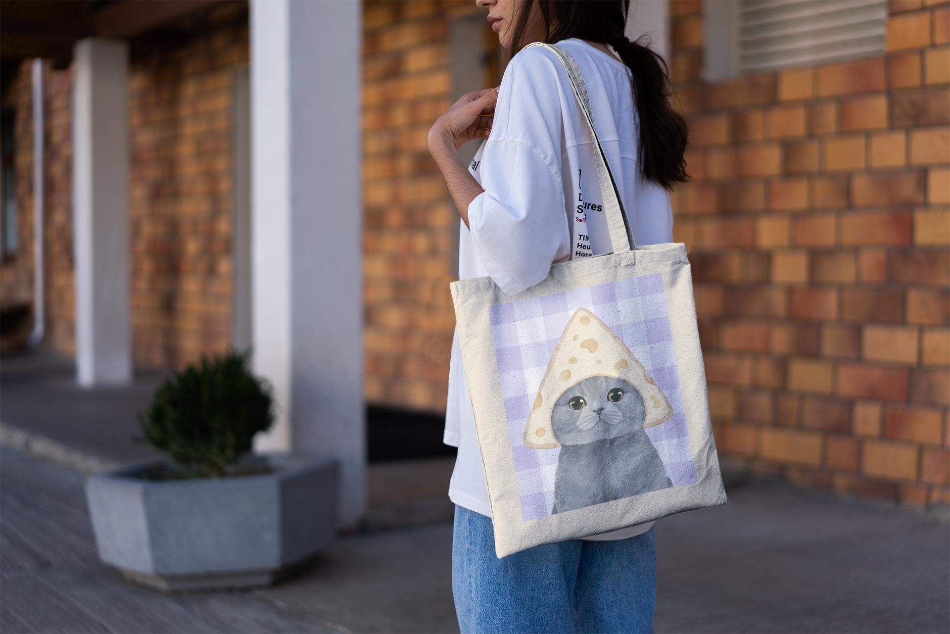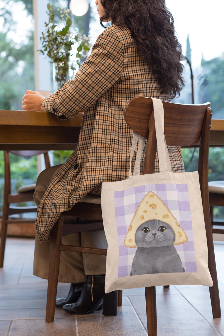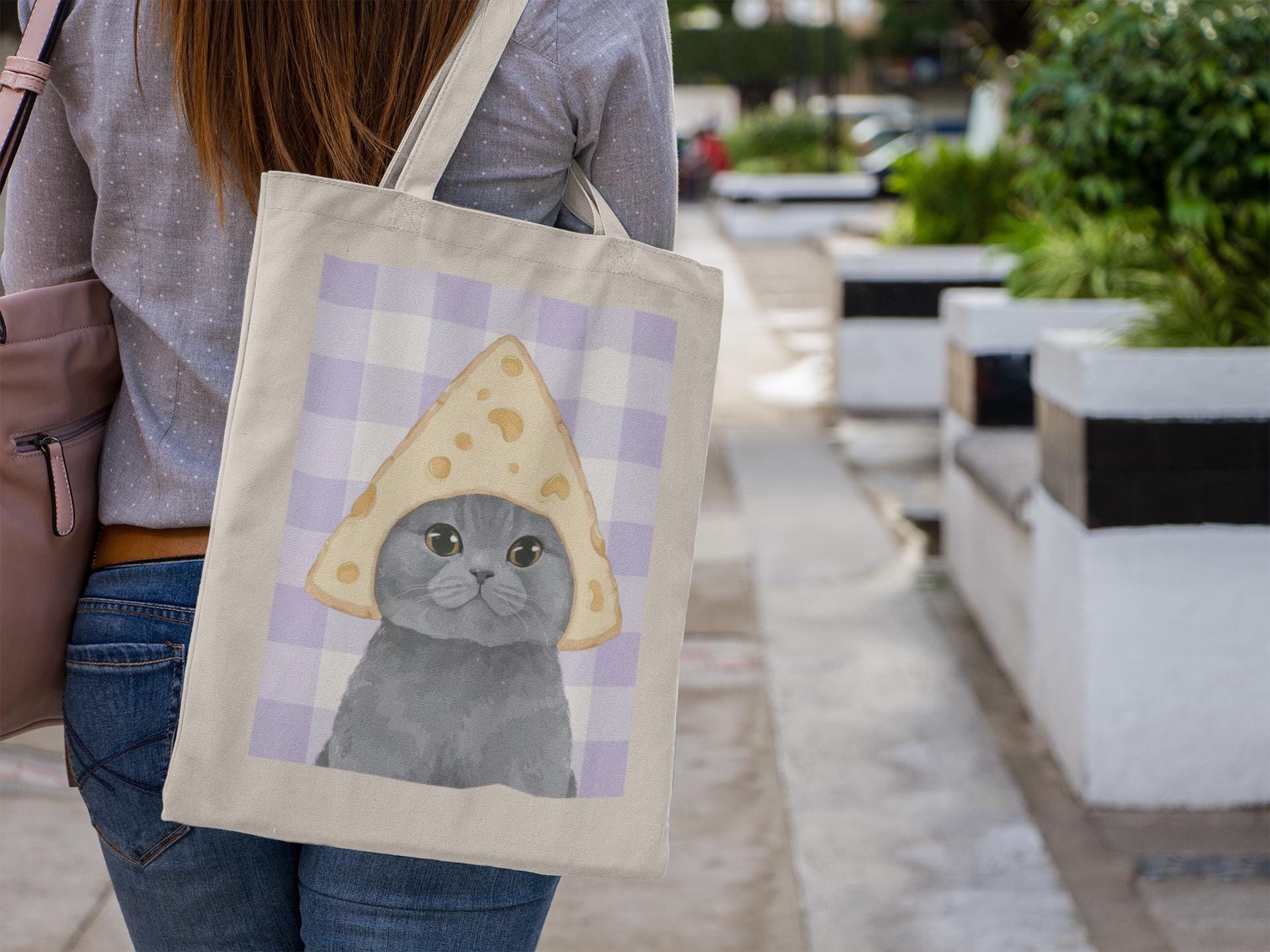Get cheesy (in the best way) with the Cheese Hat Kitty Tote Bag—where fun meets functional.