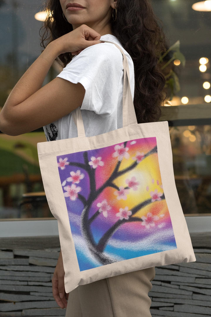 Step into a world of serene beauty with the Cherry Blossom Tote Bag. Featuring an exquisite design of delicate cherry blossoms in soft pastel hues, this tote bag brings a blend of elegance and tranquility to your daily routine. Perfect for shopping, school, or casual outings, this tote embodies both style and practicality.