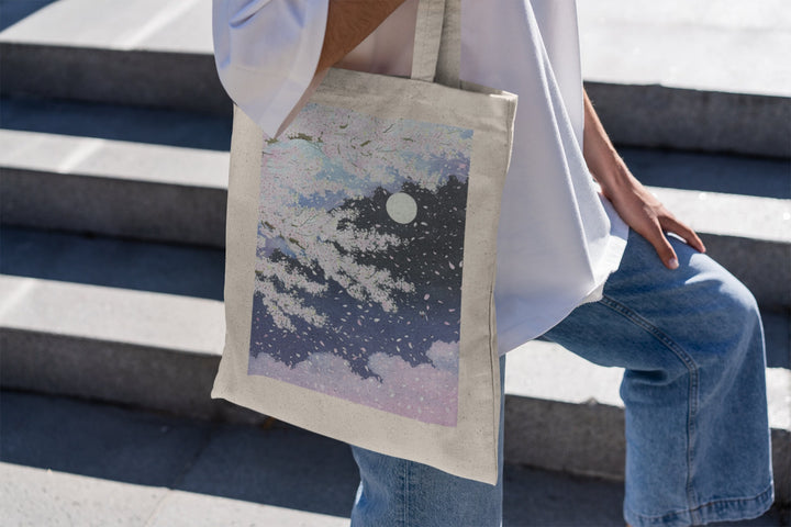 Captivating Sakura Design: Featuring a beautiful illustration inspired by the cherry blossoms of Kyoto, this tote bag transports you to the tranquil streets and gardens of Japan during the Sakura season. Its design reflects the delicate and transient beauty of cherry blossoms, perfect for anyone who cherishes this iconic symbol of spring.