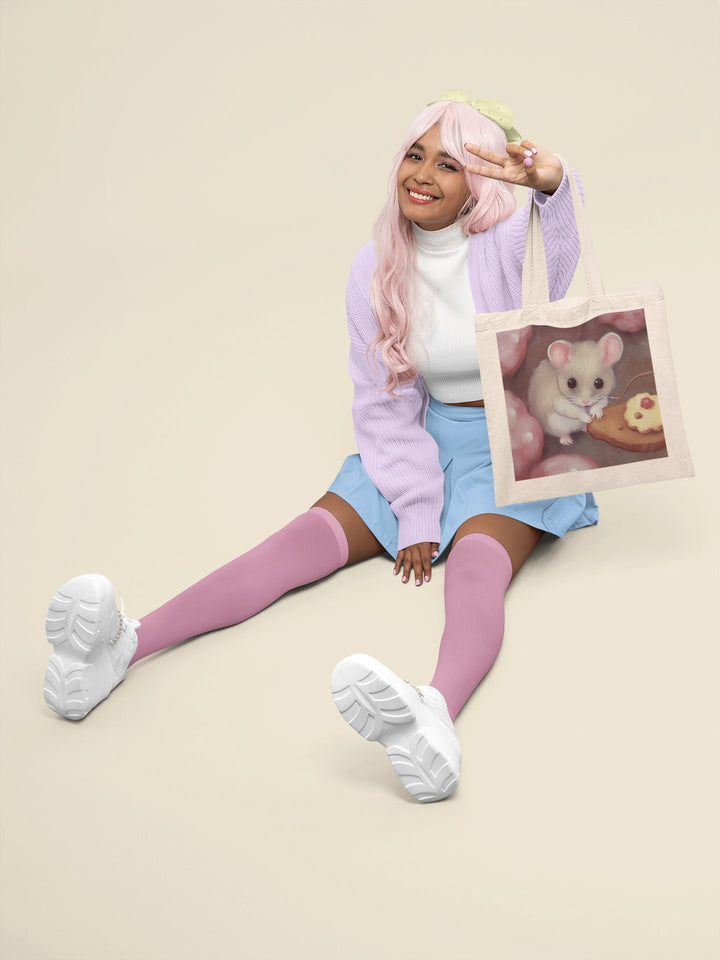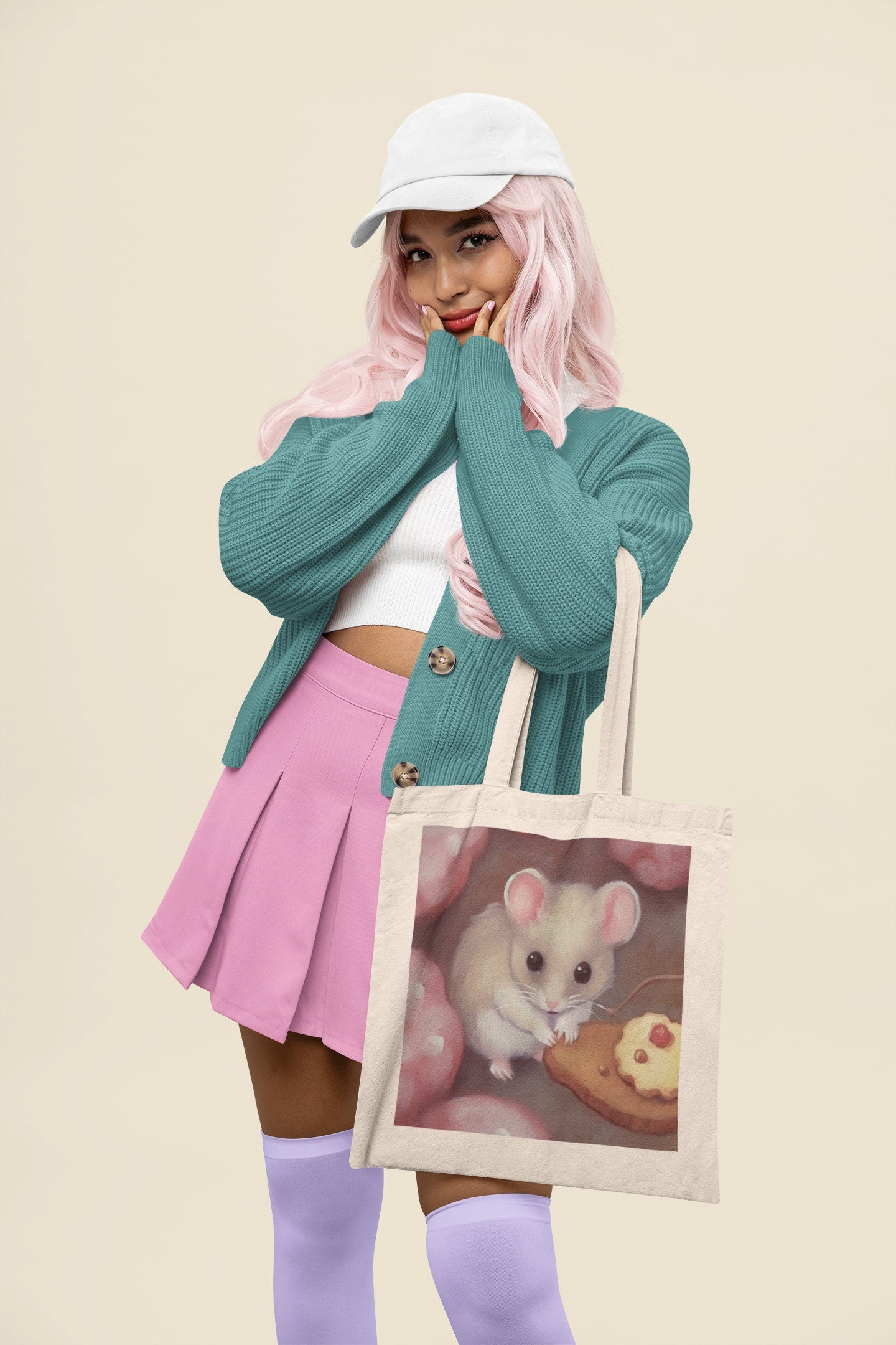 Ideal for animal lovers, cookie enthusiasts, or anyone looking to brighten their day with a dash of adorable nostalgia, the Cookie Mouse Tote Bag is more than just a bag — it's a heartwarming celebration of life's little pleasures.
