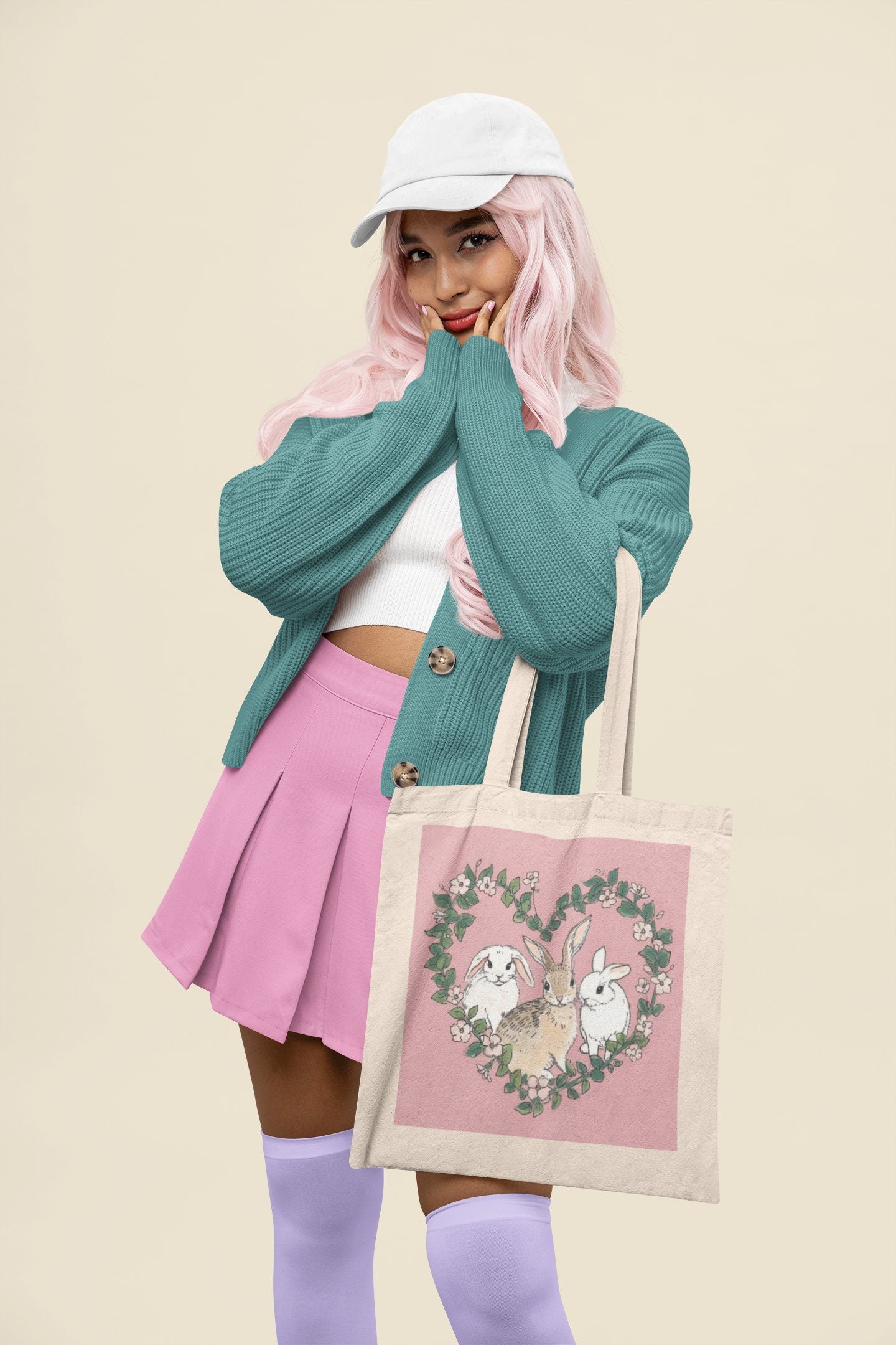 Spacious and Versatile: Crafted for both fashion and functionality, this tote bag offers ample space for your belongings, making it ideal for shopping, outings, or simply carrying a touch of bunny friendship wherever you go.