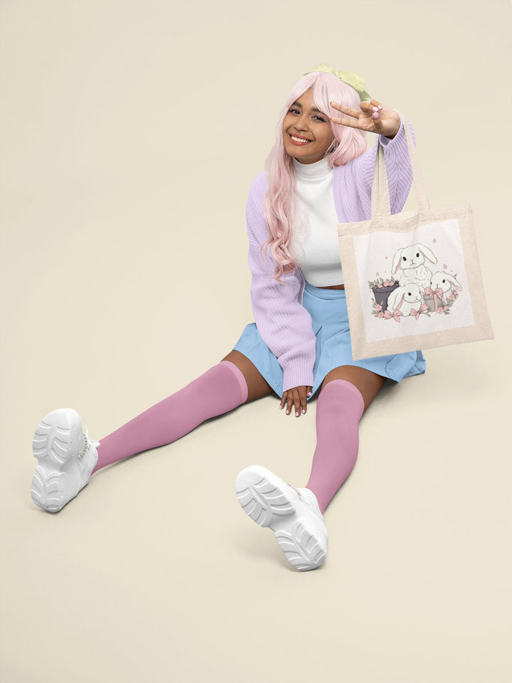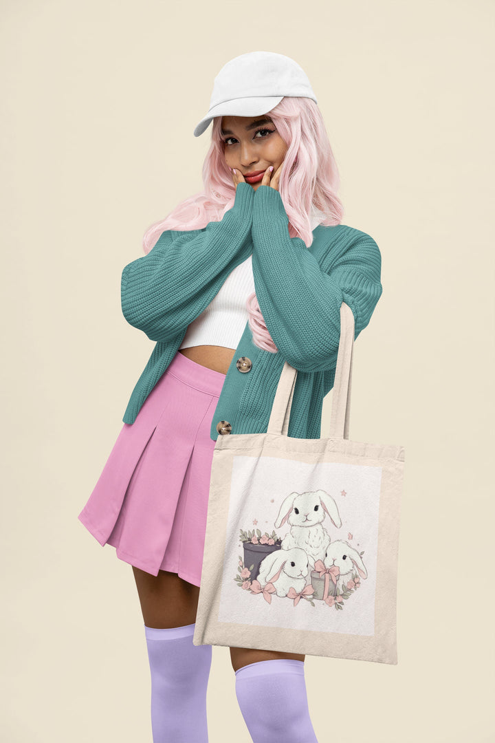 Ideal for animal lovers, bunny enthusiasts, or anyone looking to carry a piece of joy wherever they go, the "Coquette Bunny" Tote Bag is more than just a bag — it's a daily reminder to embrace cuteness and convenience.