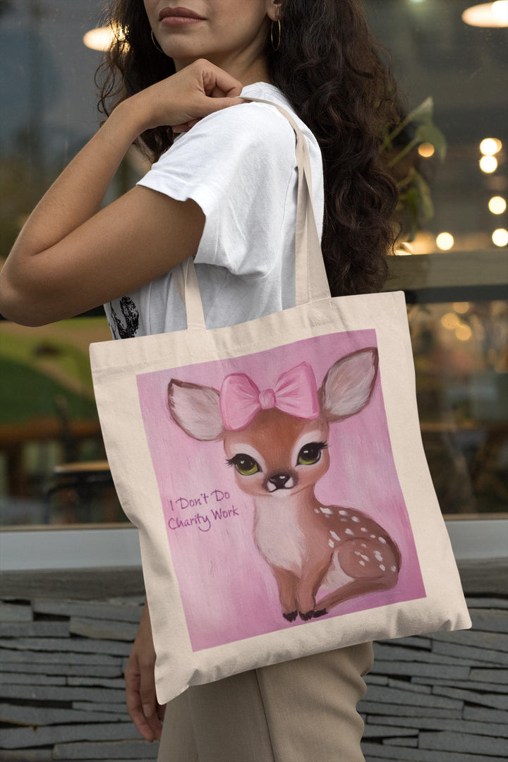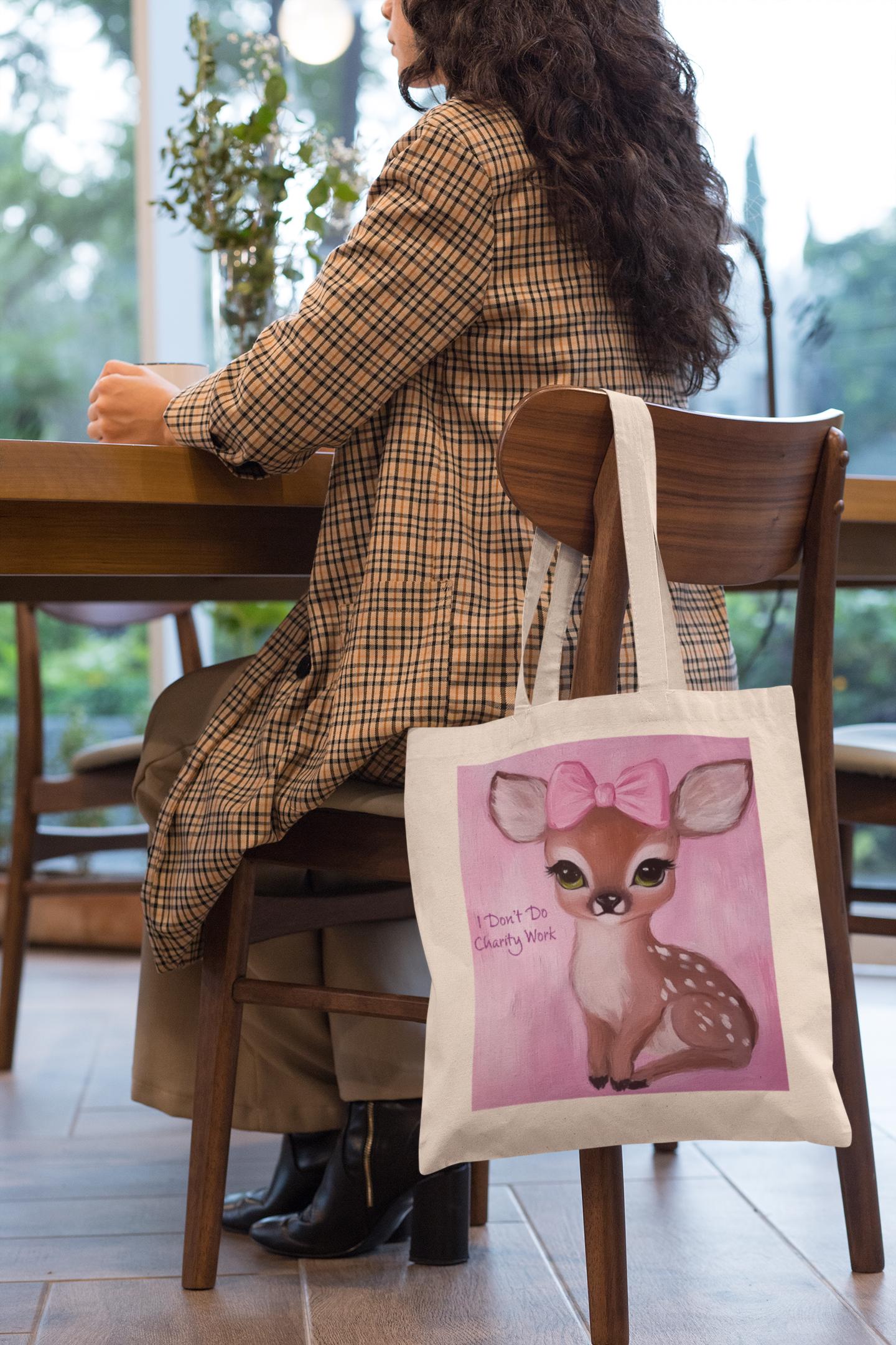 Our Coquette Pink Fawn Tote Bag also comes without the quote!