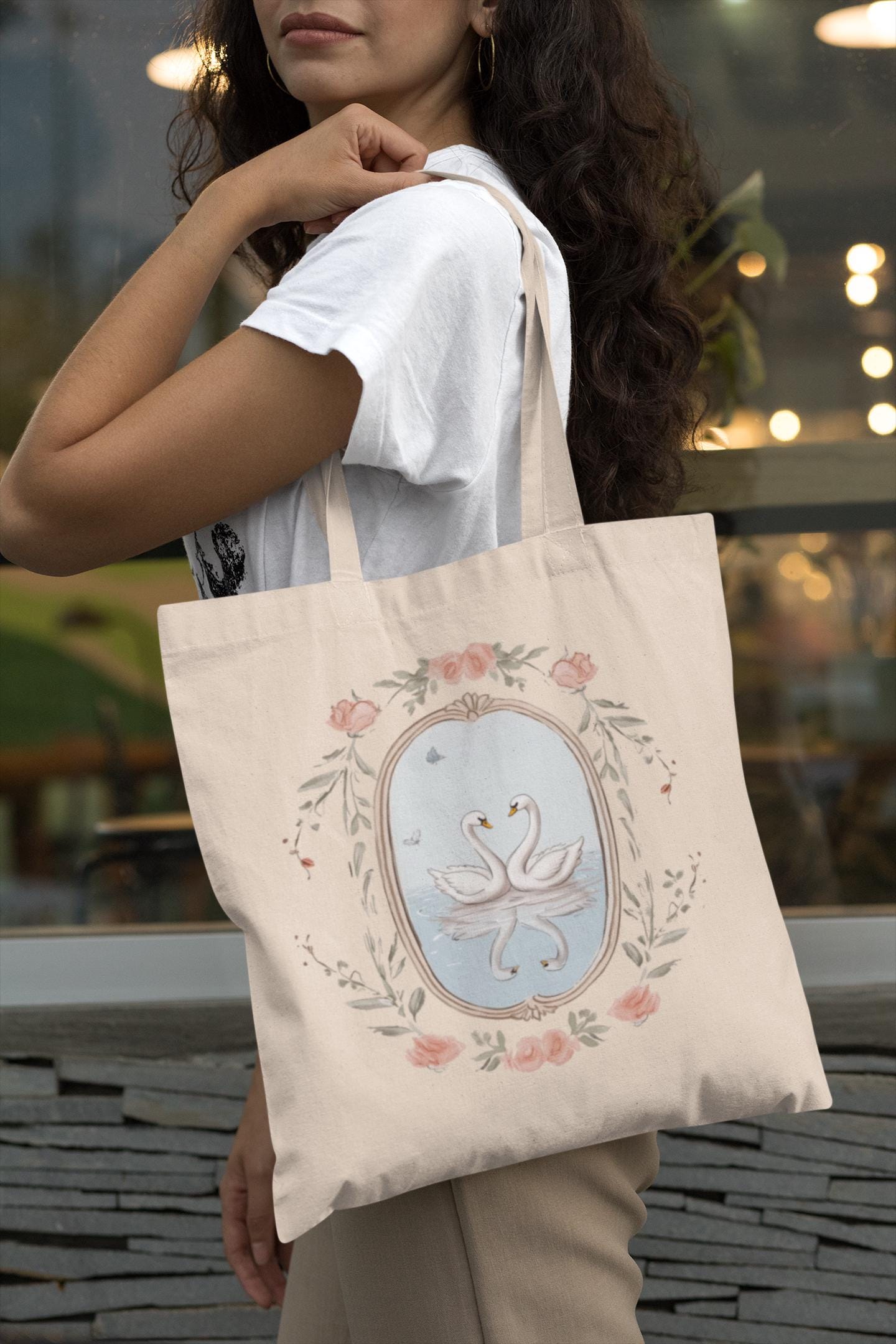 Step up your style with the Coquette Swan Tote Bag, a perfect blend of grace and beauty. Featuring a delicate swan design, this tote bag embodies feminine elegance with a touch of coquette charm. Whether you're heading to a café, shopping, or enjoying a casual day out, this tote adds a sophisticated and stylish accent to your look.