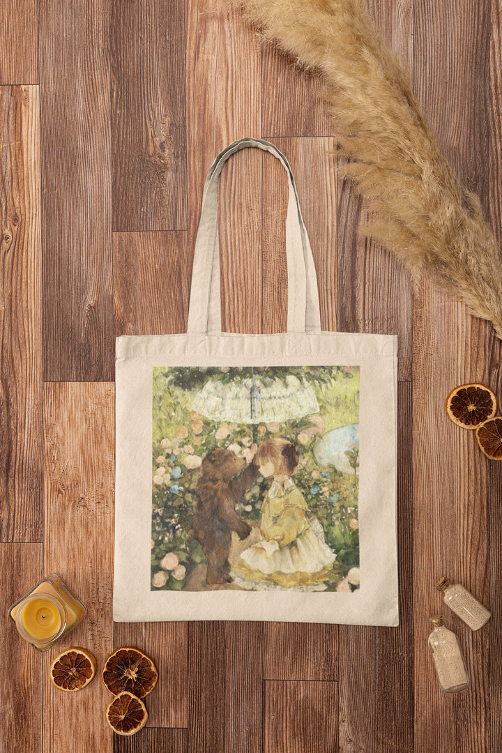 Cute Floral Girl and Bear Tote Bag: Enchanting Adventures Await in Every Carry