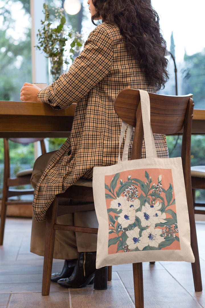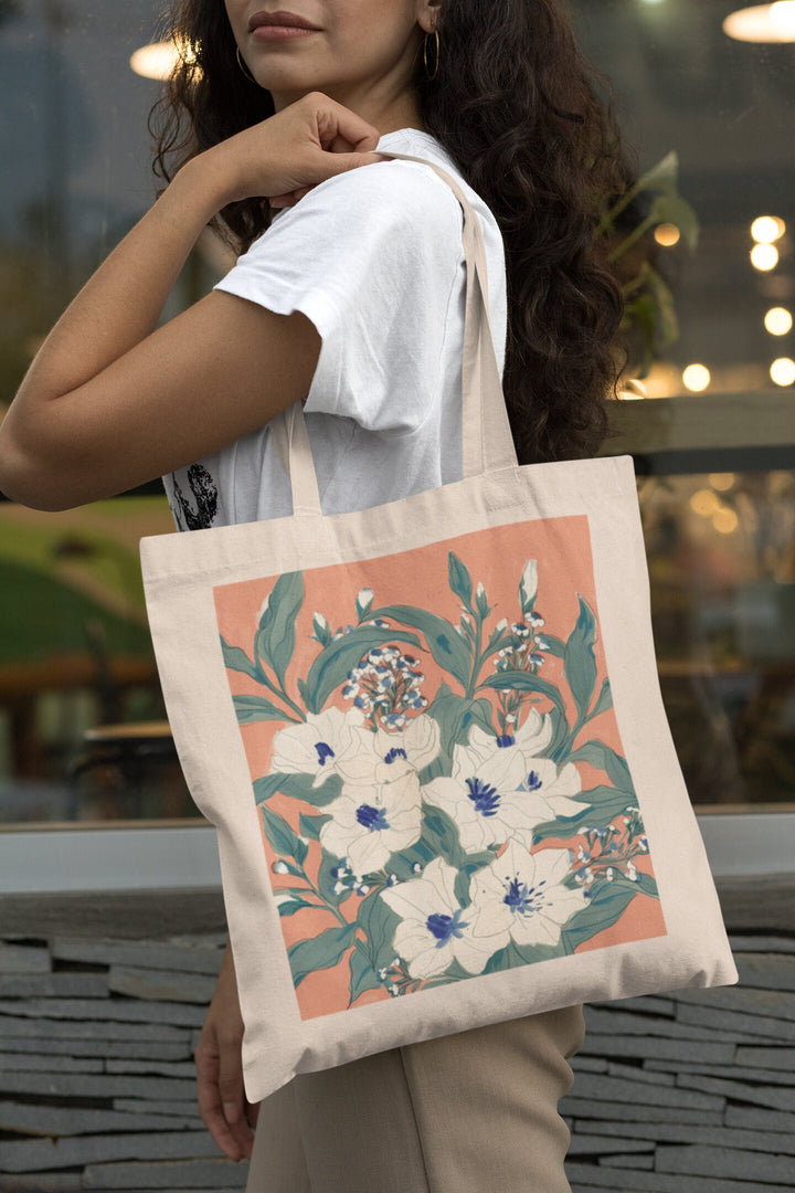 Sophisticated Floral Design: Adorned with a refined floral pattern, this tote bag features a mix of vibrant and subtle flowers, artistically arranged to create a visually stunning and elegant look. The design is perfect for anyone who loves to incorporate a touch of natural beauty into their style.