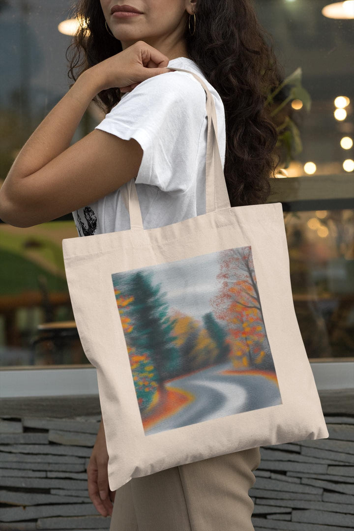 Durable and High-Quality: Crafted from premium materials, the Fall Pastel Morning Drive Tote Bag ensures durability while maintaining its vibrant and detailed design.