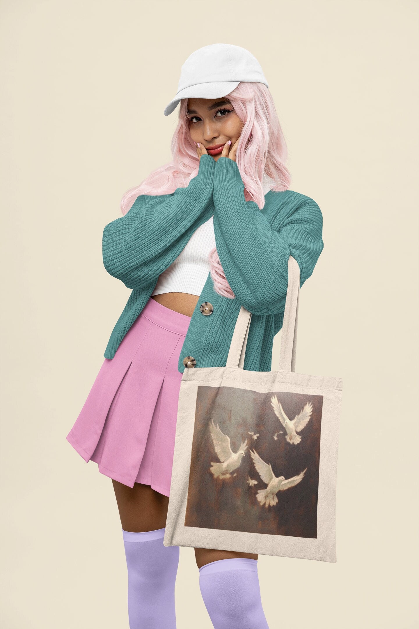 Timeless Dove Illustration: Adorned with an older inspired design featuring falling doves, this tote bag exudes a sense of classic charm and elegance, making it an ideal choice for those who appreciate the beauty of timeless aesthetics.