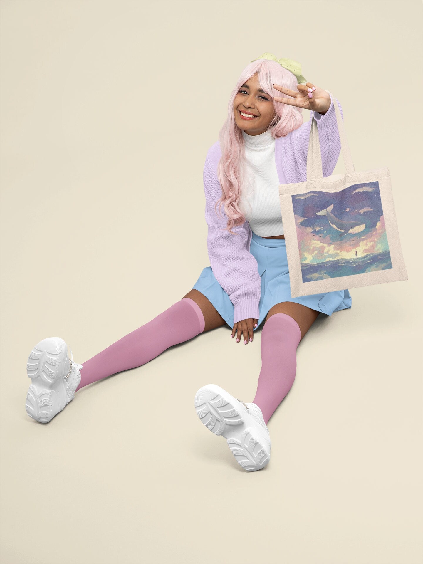 Quality Craftsmanship: Made with high-quality materials, this tote bag combines durability with artistic charm, ensuring it stands out as a statement piece that celebrates the harmony between marine life and dreams.