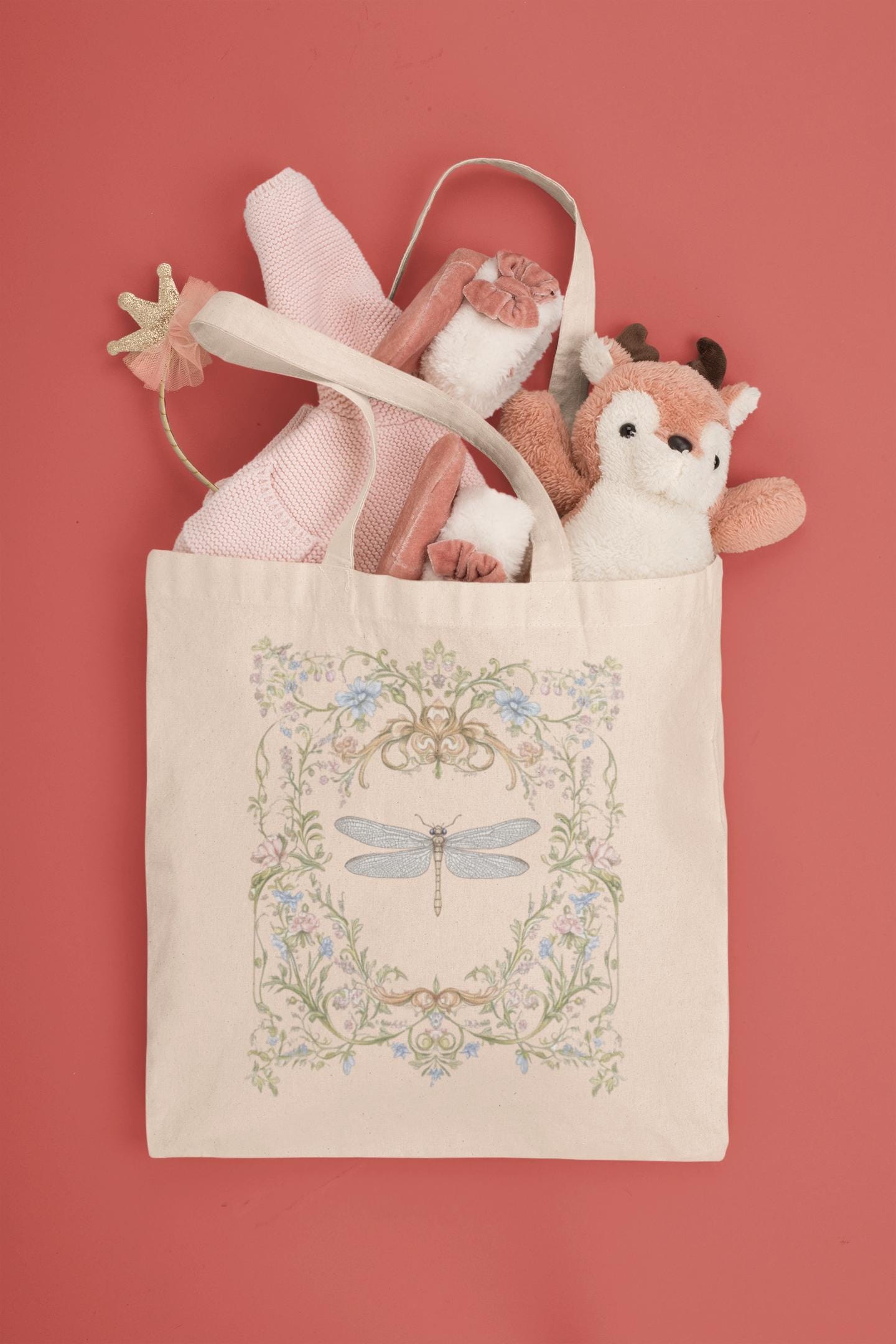 Carry the elegance of nature wherever you go with the Floral Dragonfly Tote Bag—where beauty meets practicality.