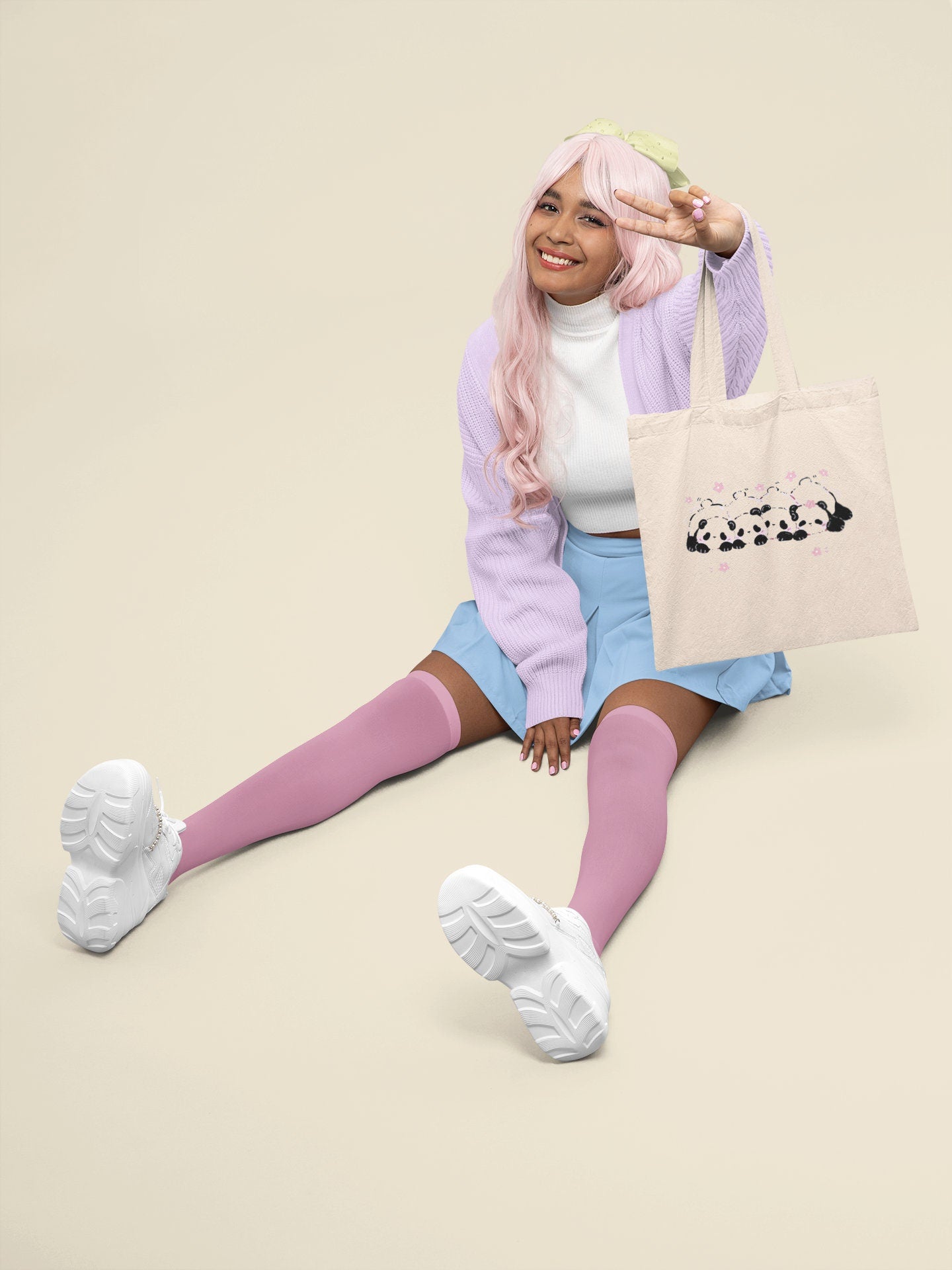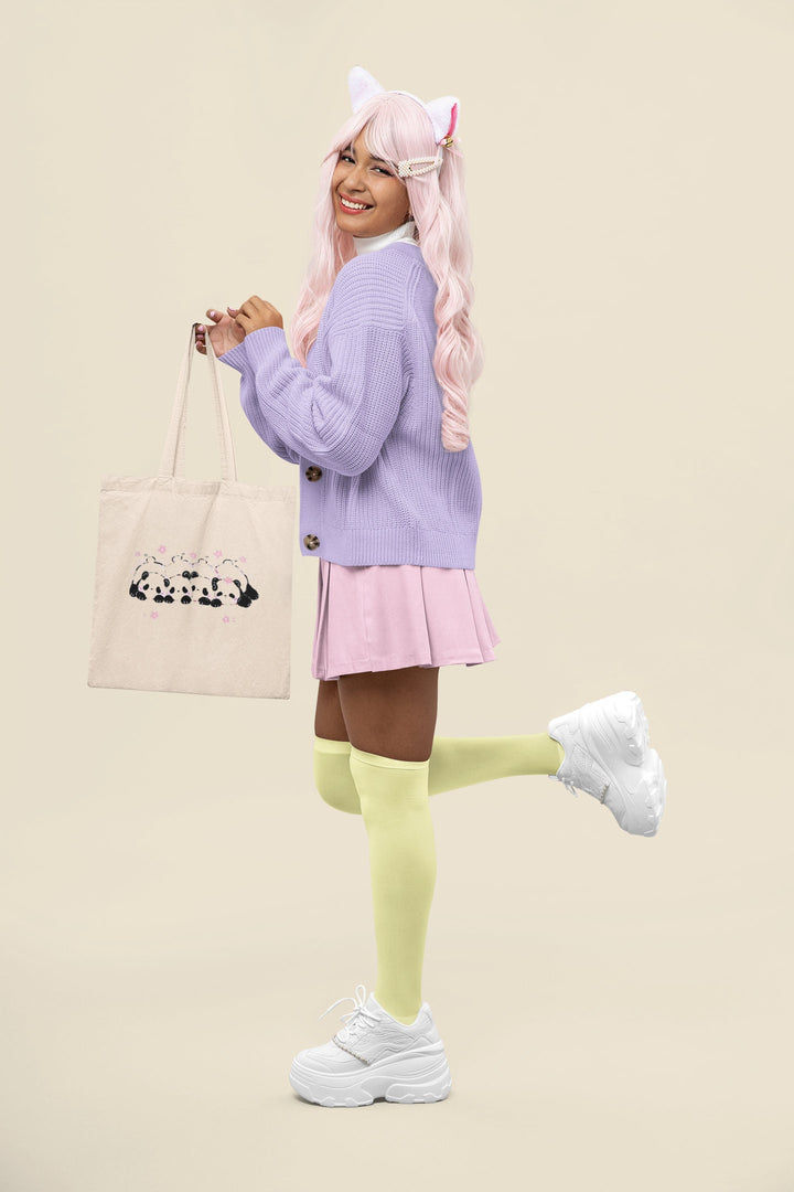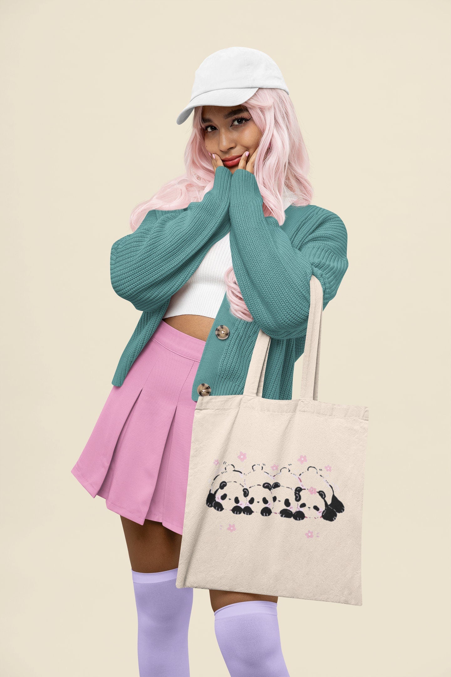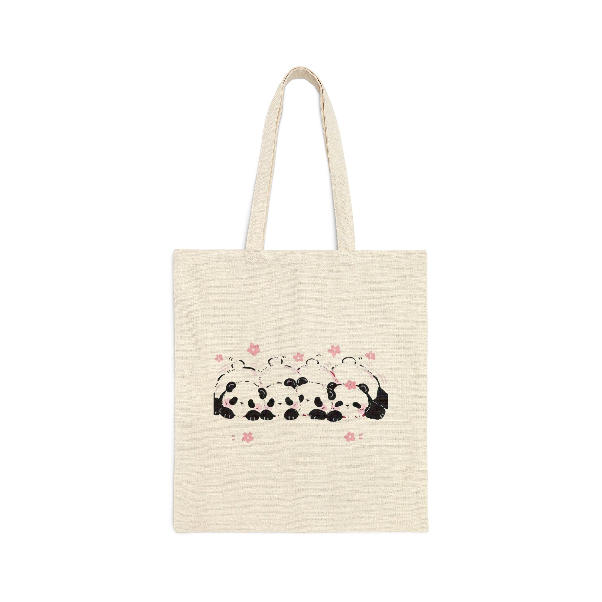 Irresistibly Cute Pandas: Adorned with four endearing pandas, this tote bag captures the essence of cuteness and joy, perfect for panda lovers and animal enthusiasts.