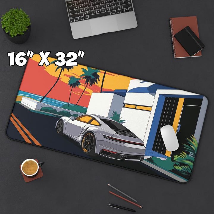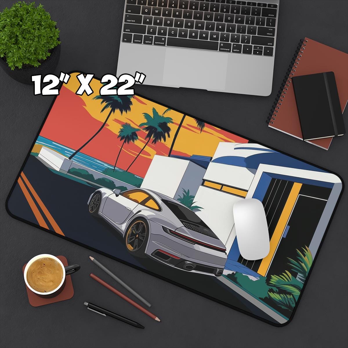Bring golden hour vibes to your workspace with the Grey 911 Sunset Mouse Pad, featuring a sleek grey 911 set against a breathtaking sunset backdrop. Perfect for automotive fans, gamers, and anyone who loves a stylish and functional desk setup.