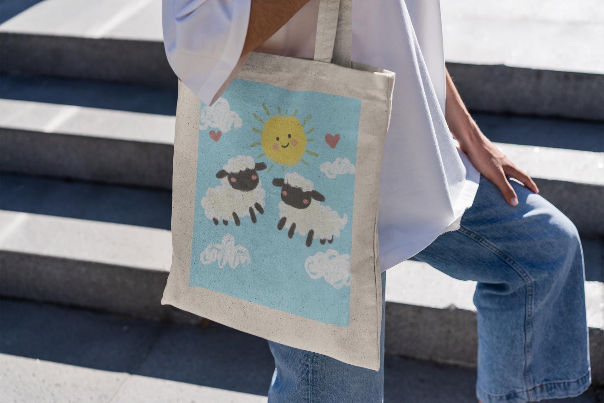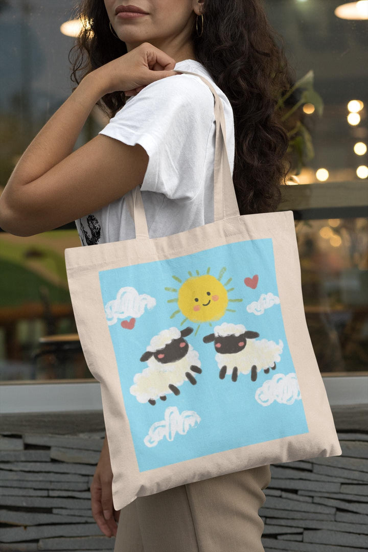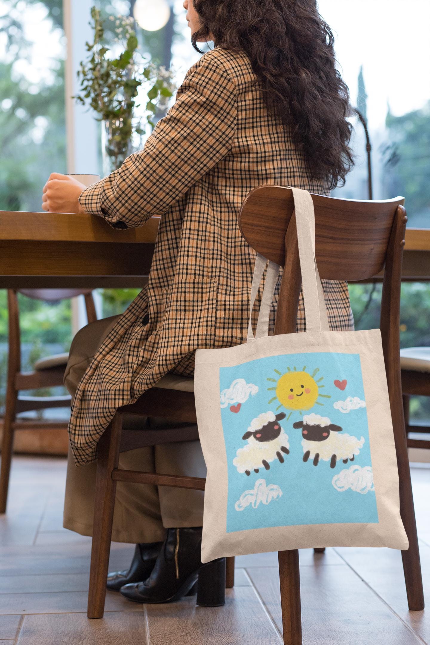 Bring a smile to your day with the Happy Sheep Tote Bag—a delightful blend of charm and everyday practicality.