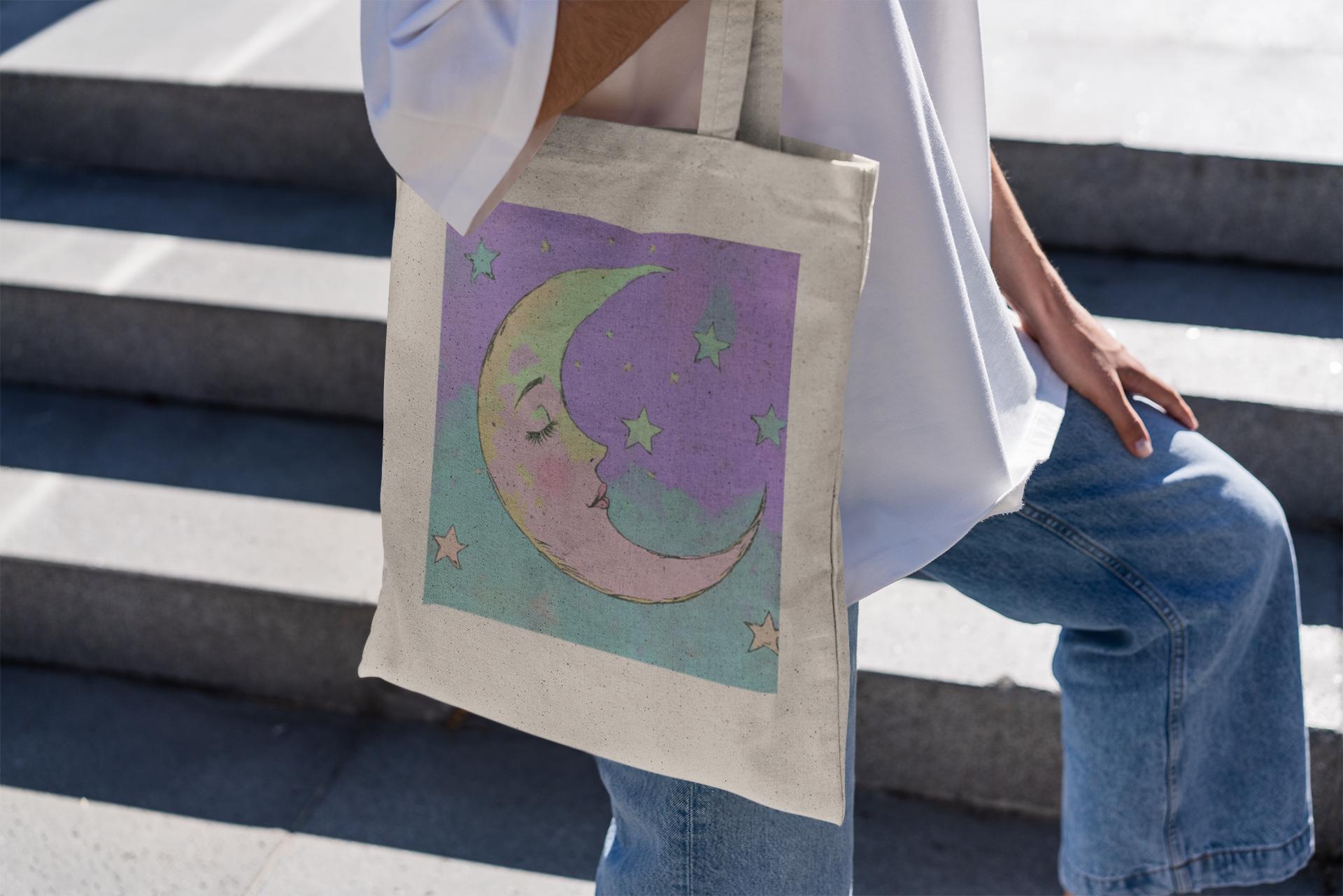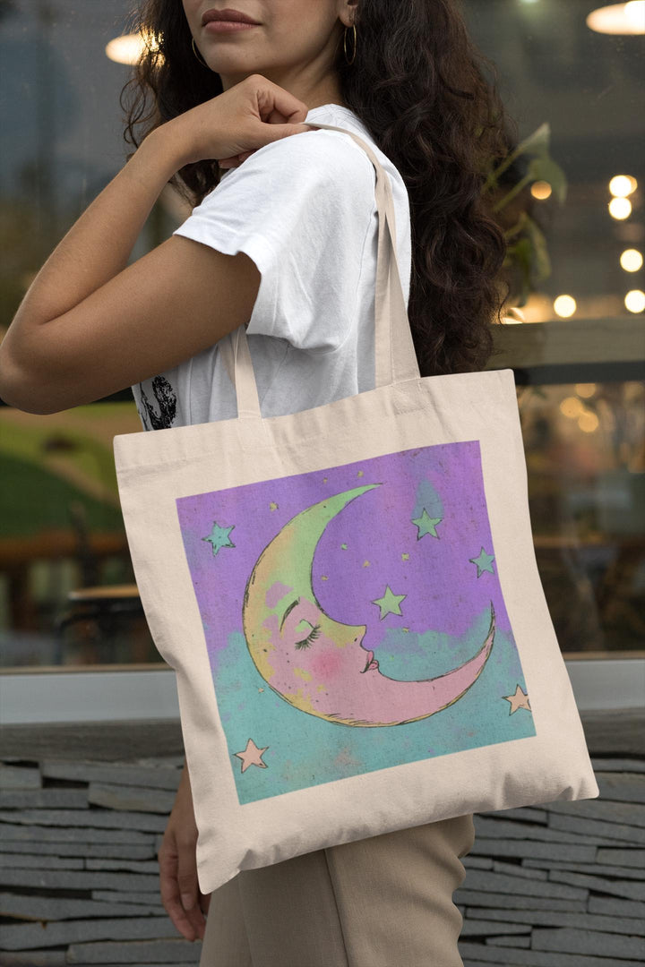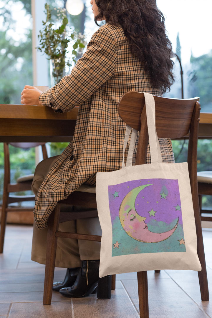 Express your free spirit with the Hippy Moon Tote Bag—where boho aesthetics meet celestial wonder.