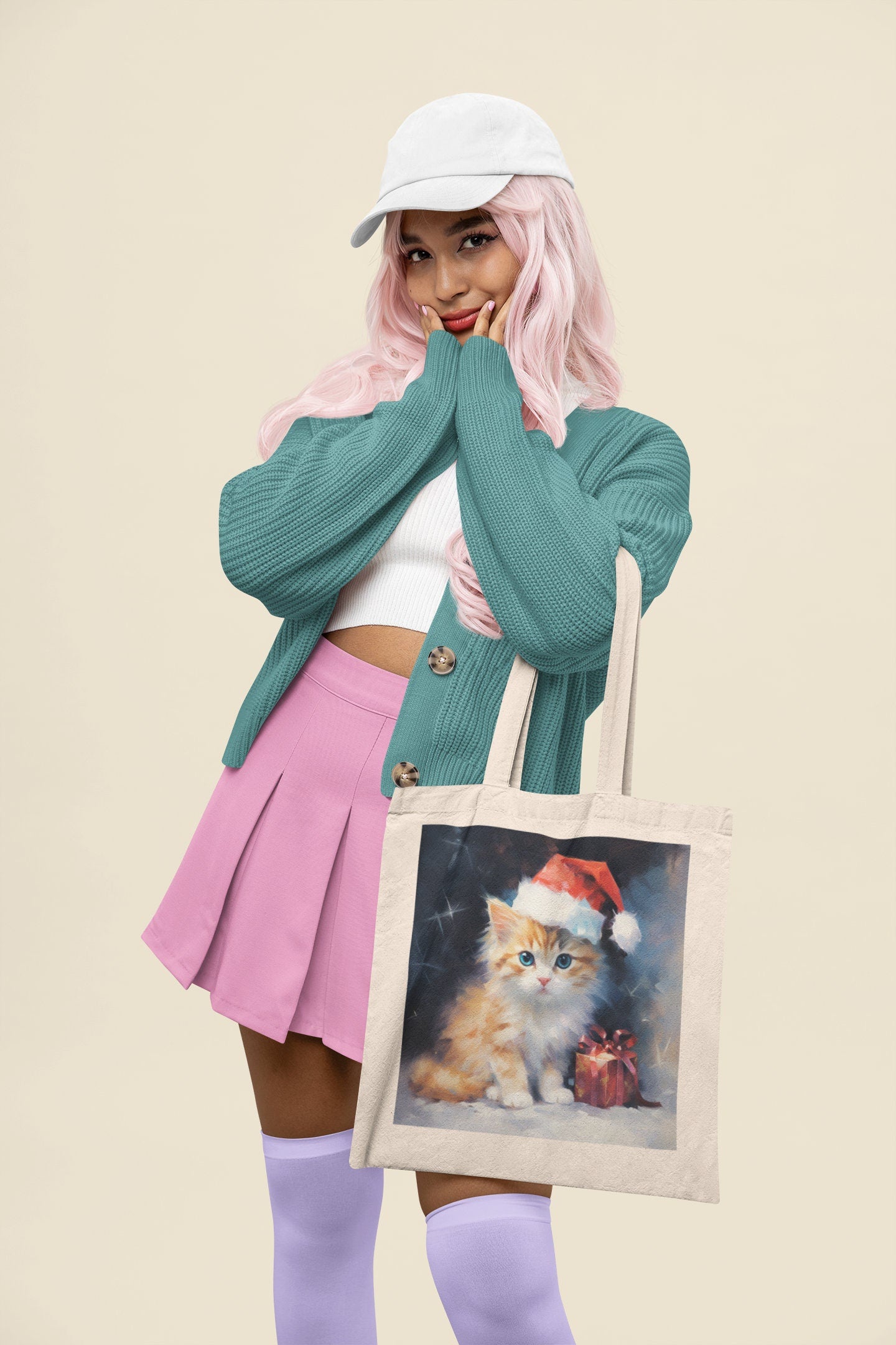 Perfect for cat aficionados, holiday enthusiasts, or anyone looking to infuse their look with seasonal cheer, the Holiday Calico Cat Tote Bag is a harmonious blend of holiday magic and feline allure.