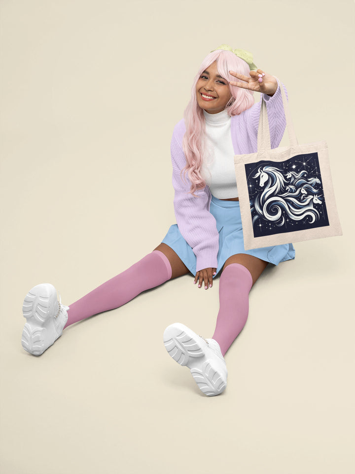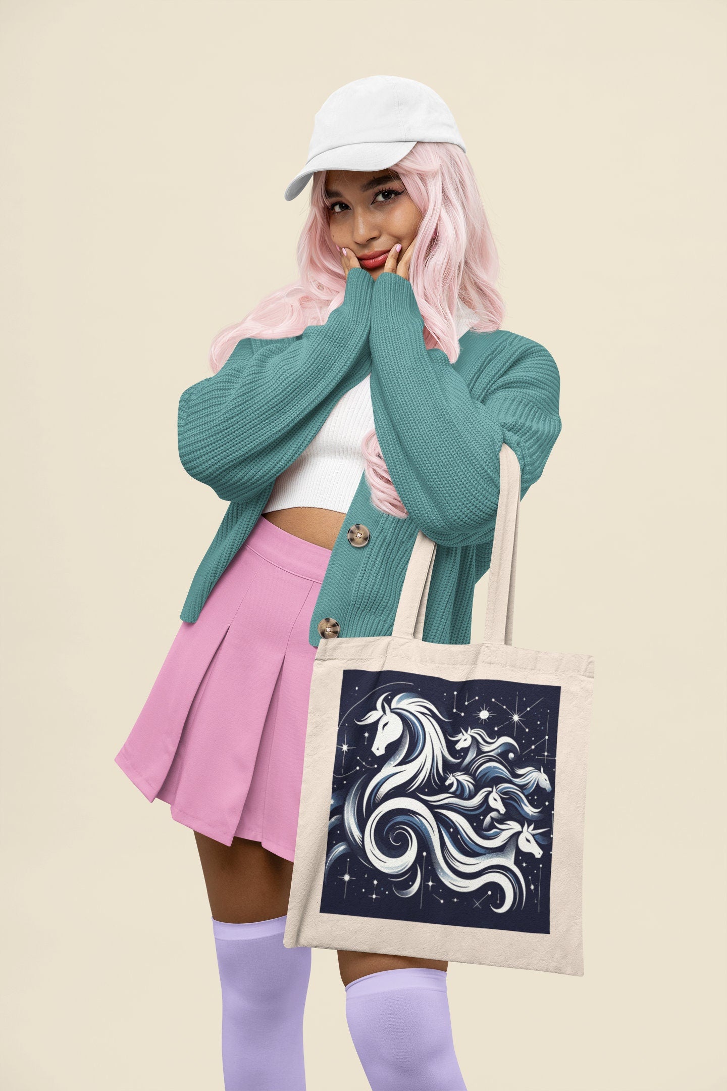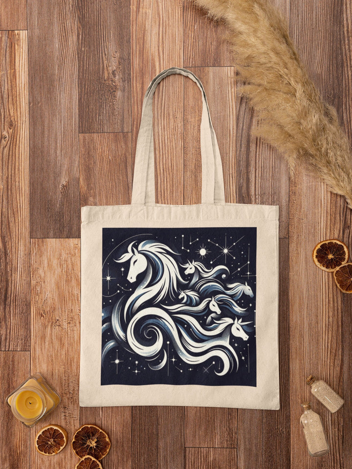 Embark on an astral adventure with our Magical Starry Horses Tote Bag, where the elegance of horses meets the boundless beauty of a starlit sky. This tote is a sublime accessory for anyone captivated by the majesty of horses and the mystery of the cosmos.