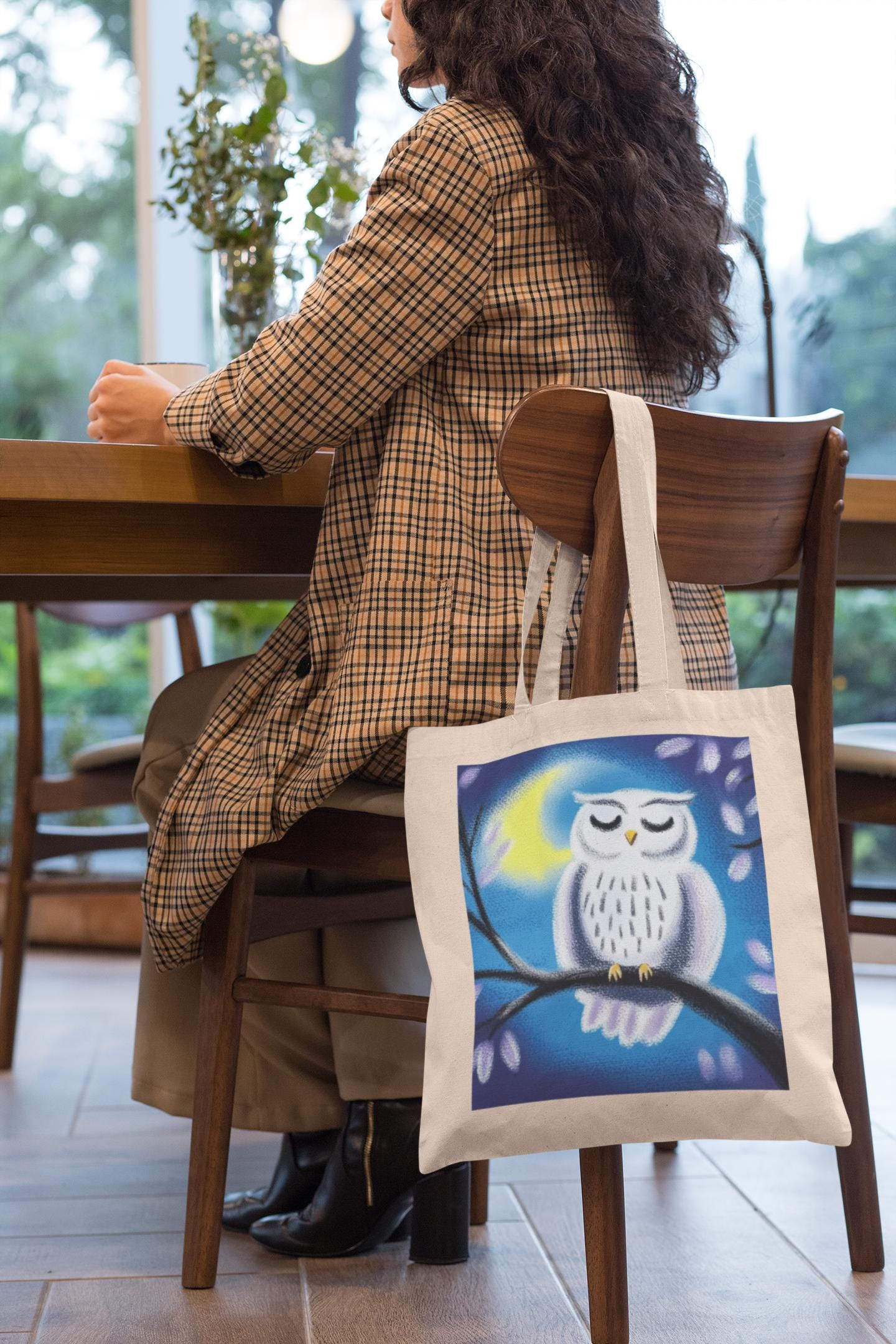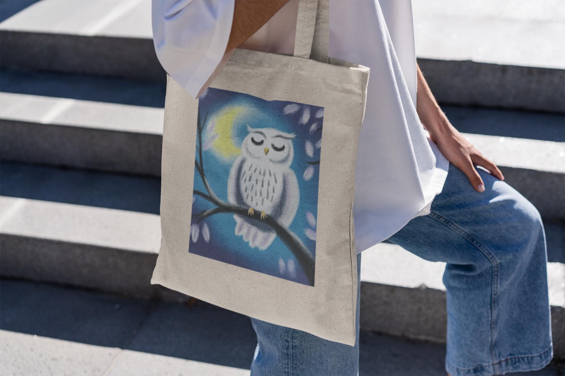 Enhance your collection with the Midnight White Owl Tote Bag—where nature’s elegance meets everyday functionality.