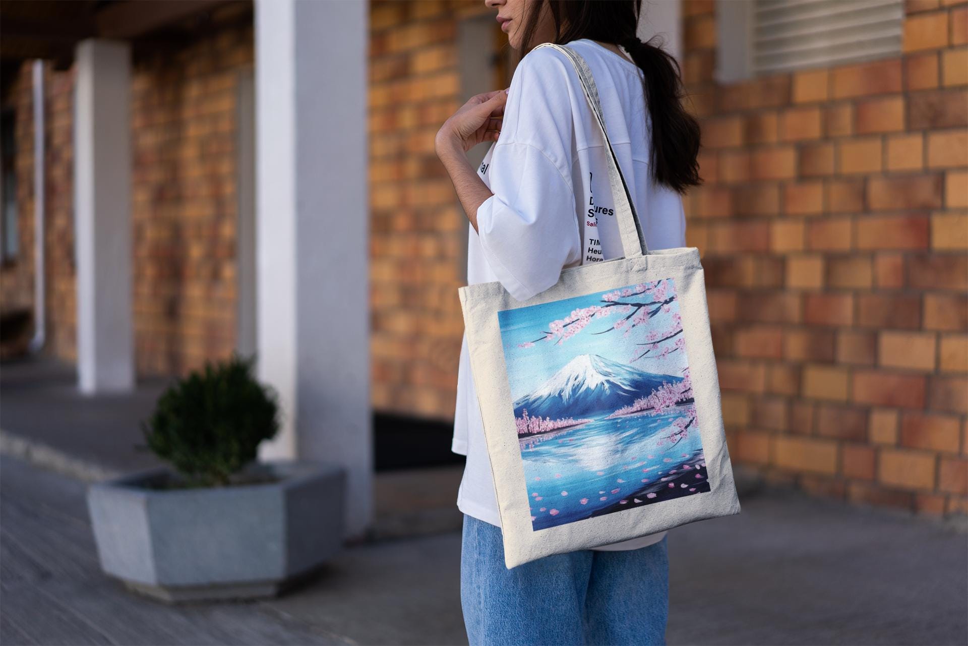 Carry the essence of sakura season with the Mount Fuji Cherry Blossom Season Tote Bag—where timeless beauty meets everyday style.