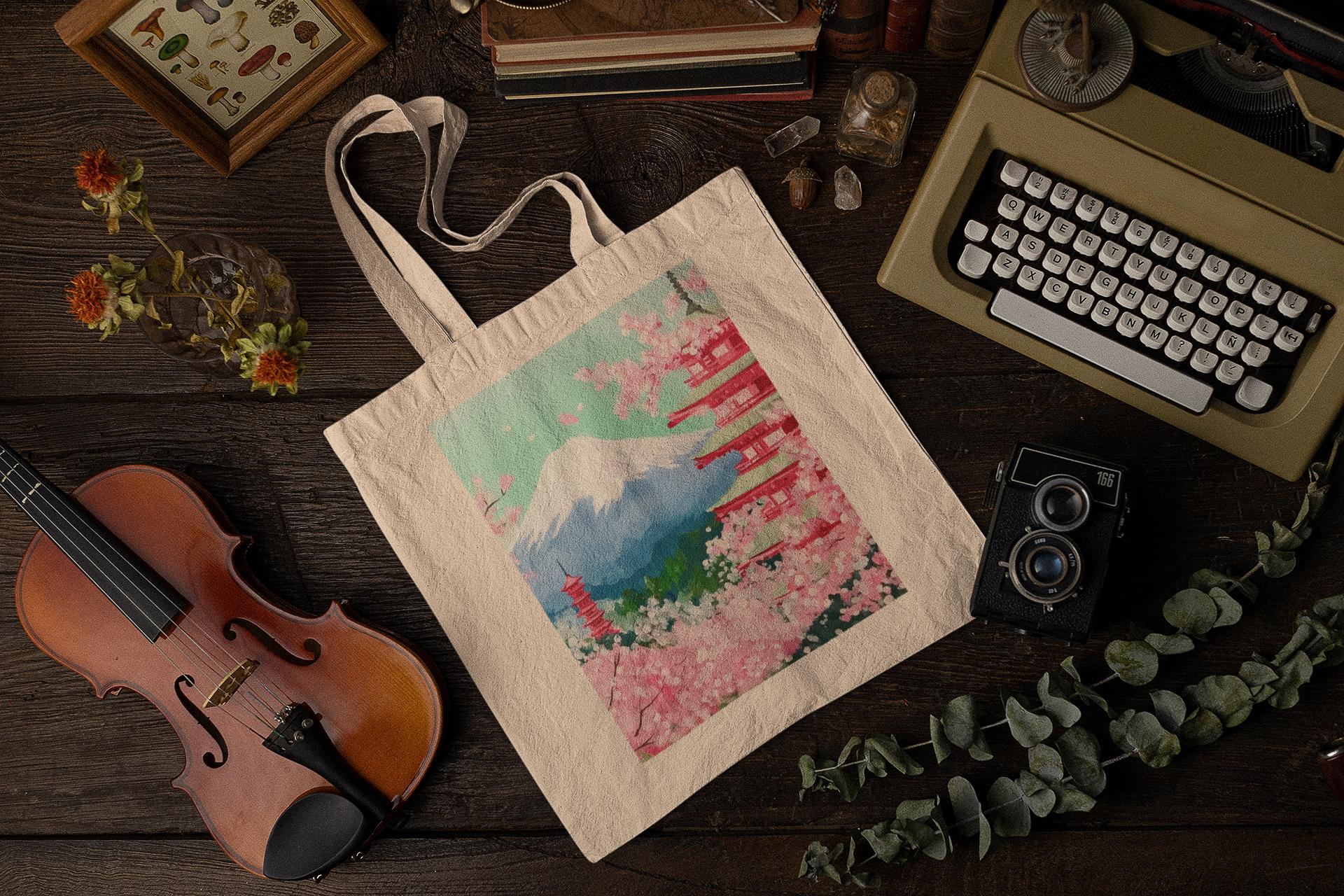 Take a piece of springtime in Japan with you everywhere with the Mt. Fuji Cherry Blossom Tote Bag—where beauty meets function.