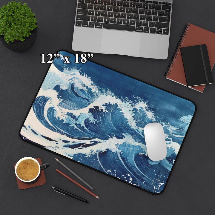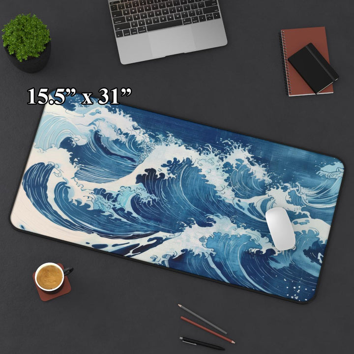 Traditional Japanese Art: Features a detailed depiction of iconic ocean waves, inspired by classic Japanese woodblock prints. This design adds a touch of cultural sophistication and calm to your desk.
