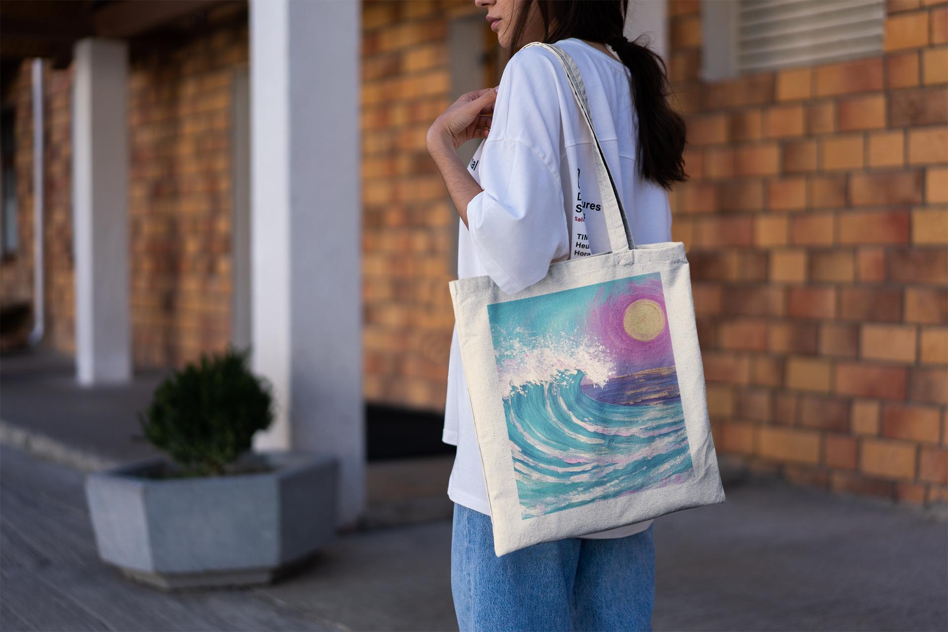 Inspired by the power and beauty of the sea, the Ocean Wave Tote Bag features a stunning wave design that brings a sense of calm and motion to your everyday essentials. Whether you're heading to the beach, library, or local market, this tote is the perfect blend of art and function.