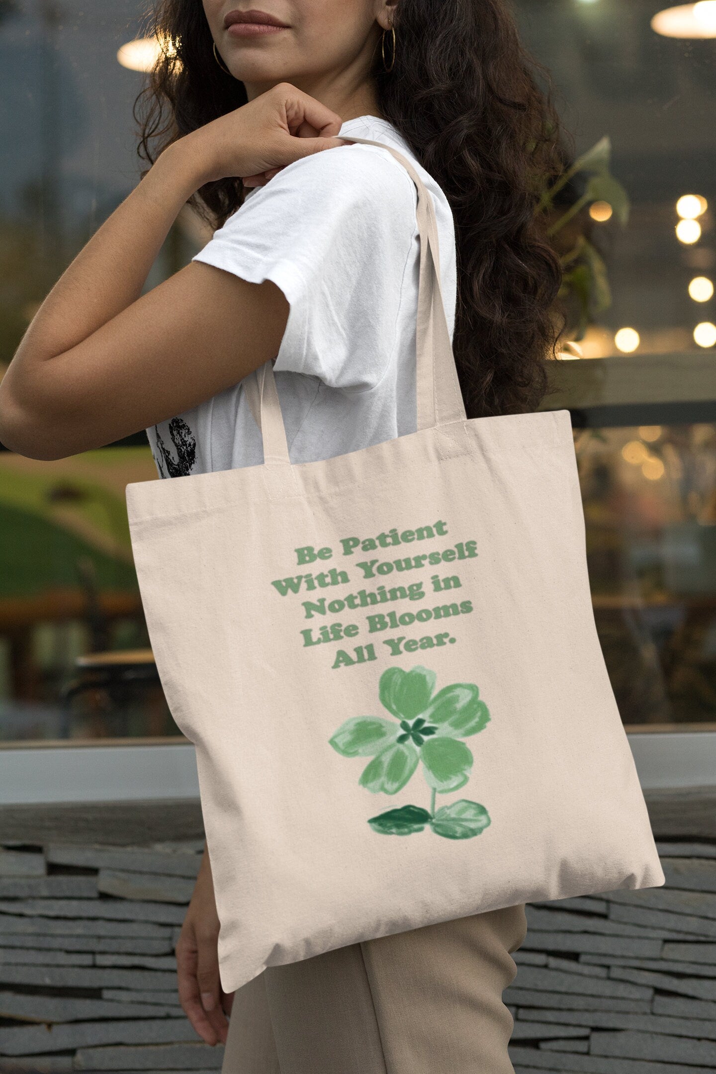 Perfect Gift for Optimists and Seekers of Positivity: Gift this tote bag to a friend, family member, or even yourself as a charming reminder to remain patient and hopeful. It’s an ideal choice for anyone who values thoughtfulness and the little reminders that make each day better.