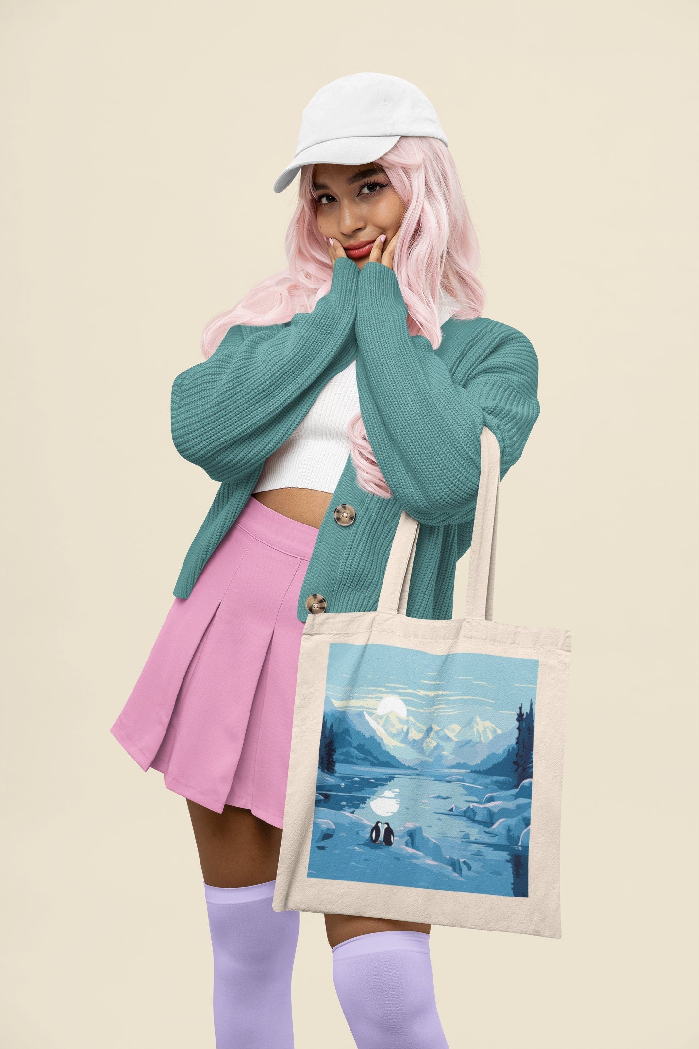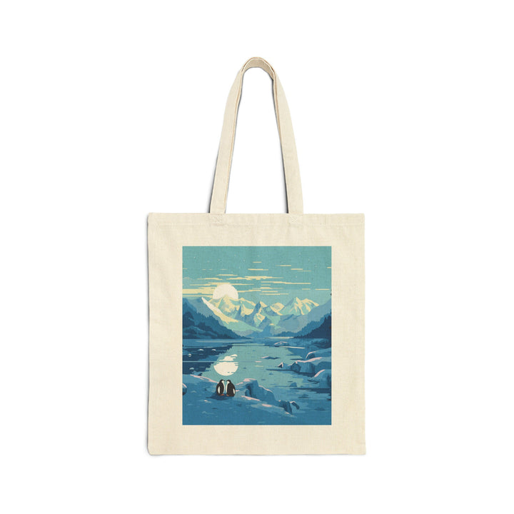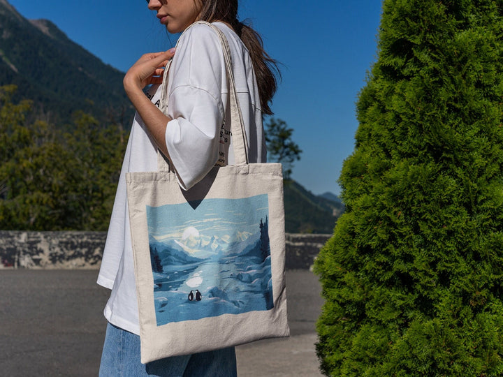 Antarctic Adventure: Adorned with a delightful illustration of penguins frolicking amidst the pristine ice and snow of Antarctica, this tote bag captures the spirit of exploration and wildlife, making it a must-have for nature enthusiasts, animal lovers, and adventure seekers.