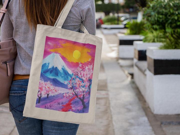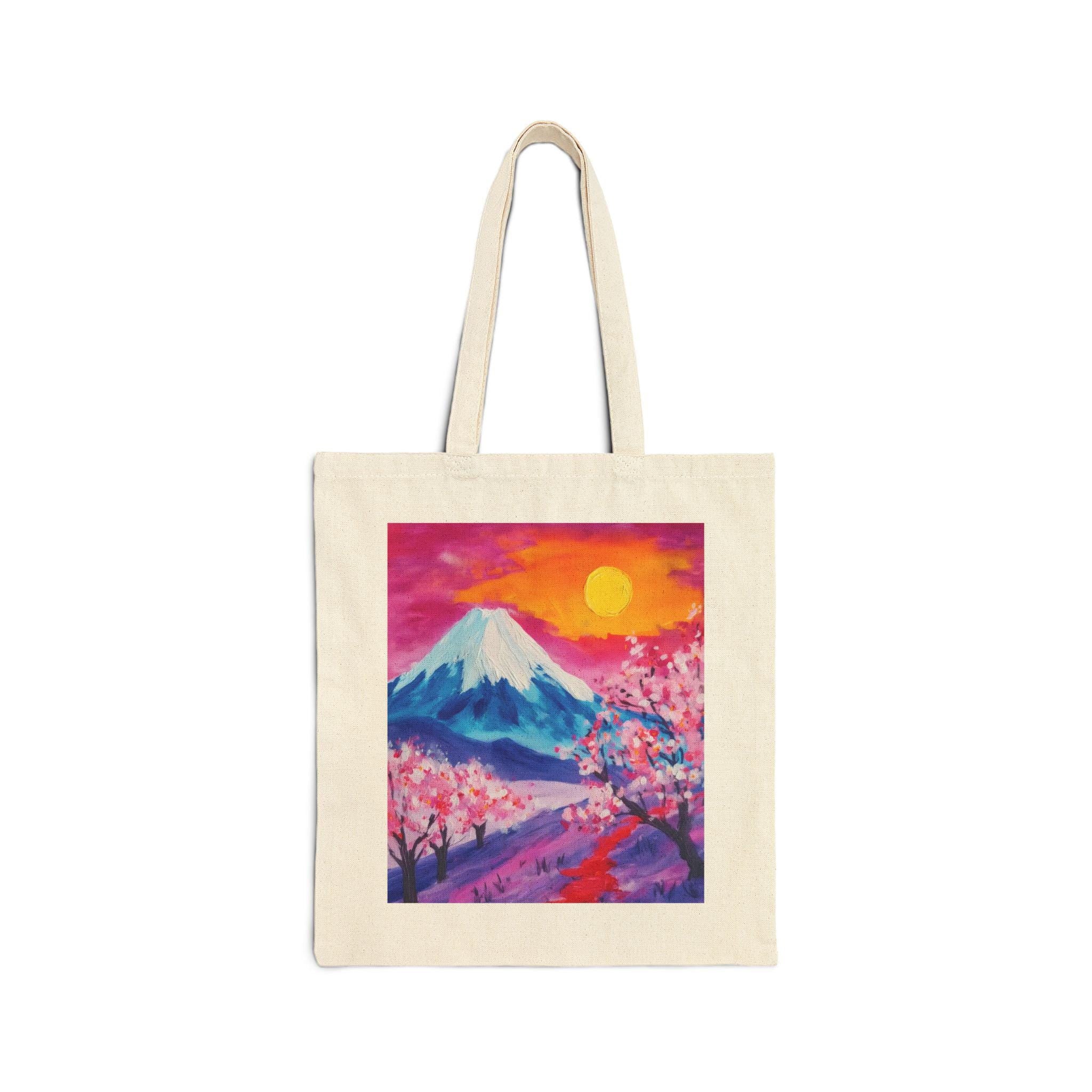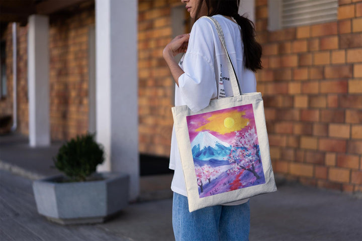 Capture the beauty of springtime in Japan with the Pink Cherry Blossom Mt. Fuji Tote Bag, featuring a breathtaking view of Mount Fuji framed by delicate pink sakura blossoms. Perfect for everyday errands, school, or casual outings, this tote brings a serene and timeless aesthetic to your style.