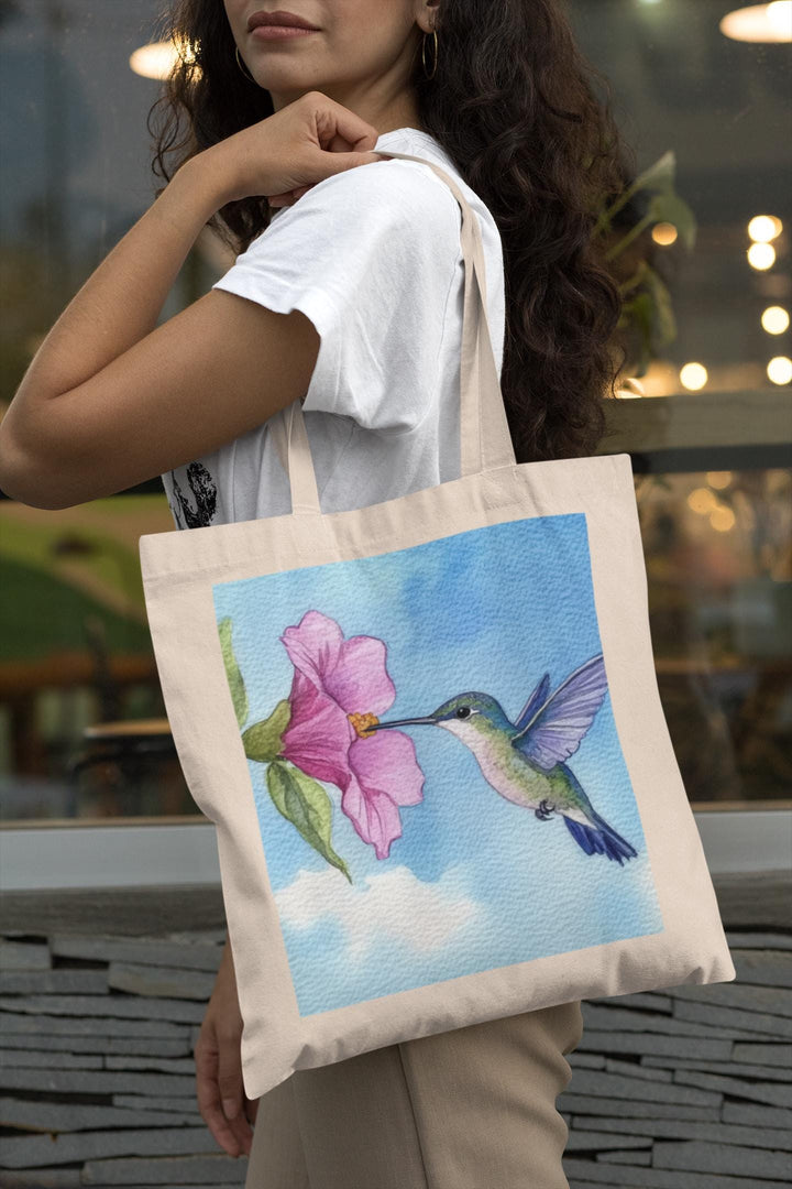 Celebrate the elegance of nature with the Pink Flower Hummingbird Tote Bag, featuring a stunning design of a delicate hummingbird hovering among blooming pink flowers. This tote combines floral charm with practical everyday use and is perfect for shopping, work, or casual outings.
