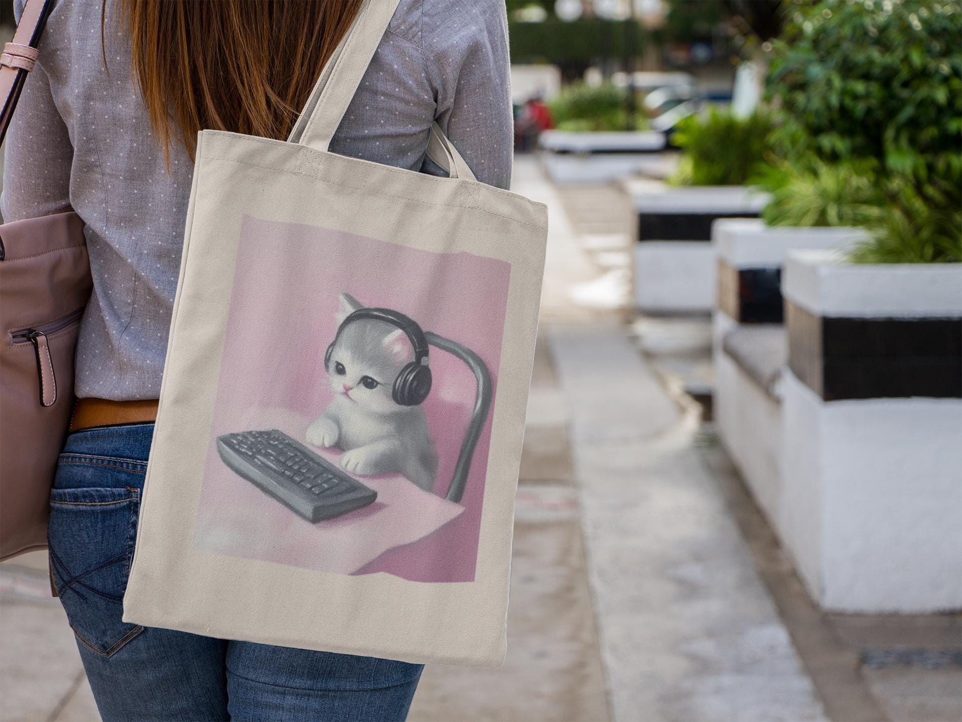 Level up your everyday style with the Pink Gaming Kitty Tote Bag, featuring an adorable cat with a headset ready for some serious (and seriously cute) gaming. Whether you're heading to school, the store, or your favorite hangout spot, this tote adds a fun and aesthetic vibe to your day.
