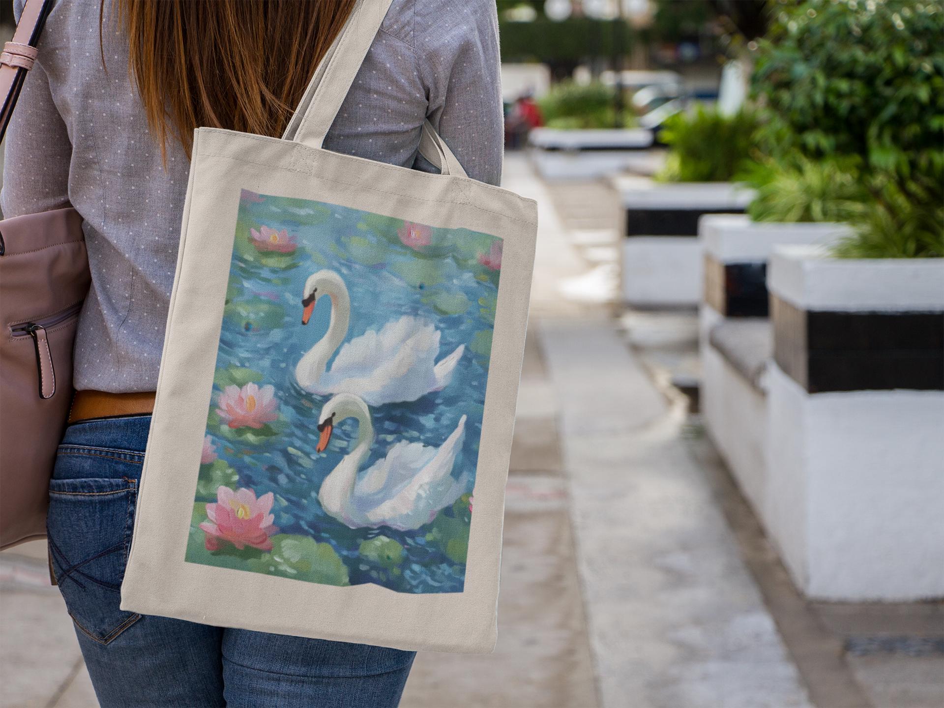 Embrace serenity and natural beauty with the Pink Lotus Flower Swan Tote Bag, featuring a graceful swan gliding among blooming pink lotus flowers. This tote brings soft, aesthetic charm to your daily routine—perfect for school, shopping, or weekend adventures.