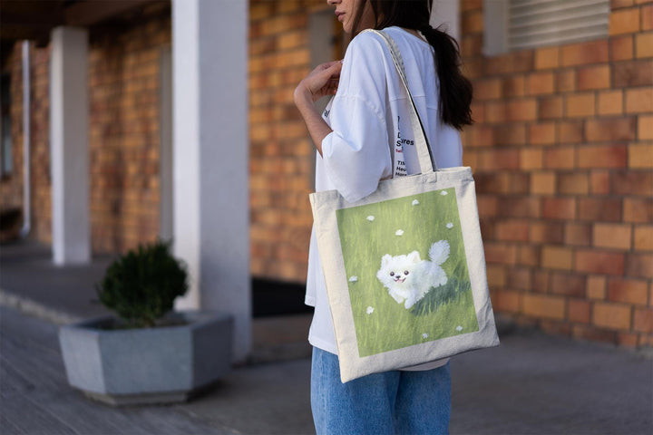 Carry cuteness wherever you go with the Pomeranian Puppy Tote Bag, featuring an adorable fluffy Pomeranian in a soft, aesthetic design. Whether you're running errands, heading to class, or out for a stroll, this tote brings playful charm and reliable functionality to your day.