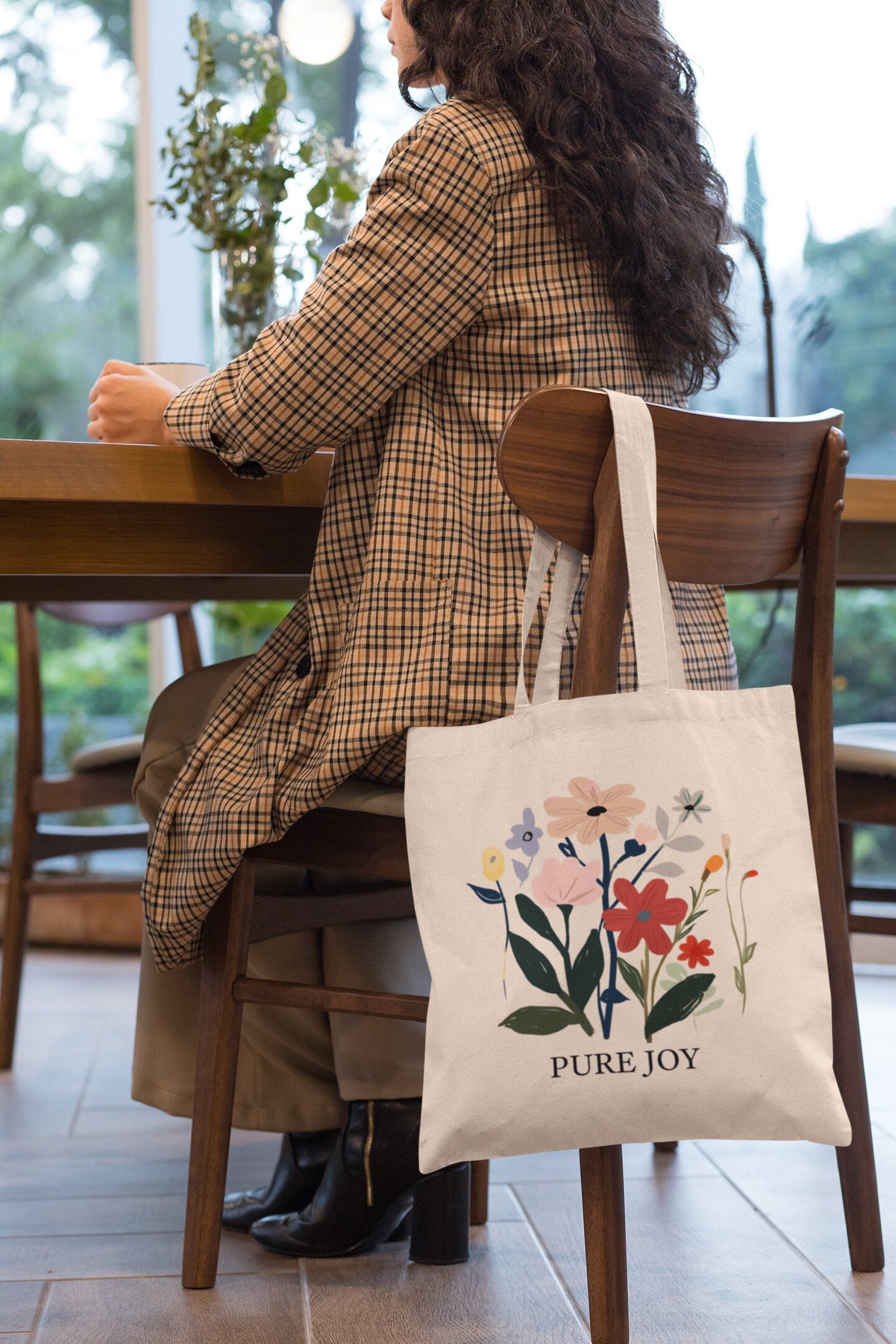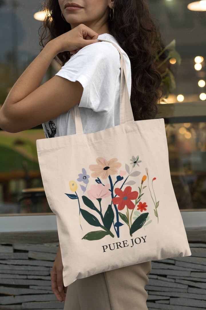 Durable and Practical: Constructed with high-quality materials, the "Pure Joy Tote Bag" is built to last. Its sturdy design ensures it can handle the wear and tear of daily activities, making it a practical choice for anyone on the go.