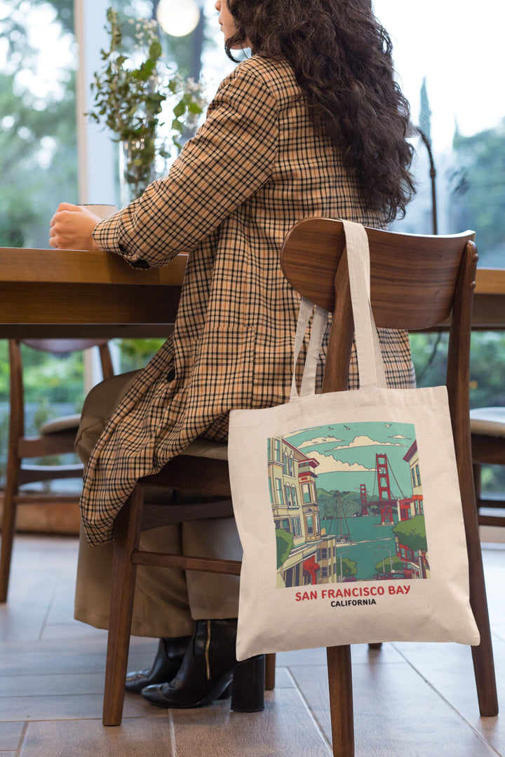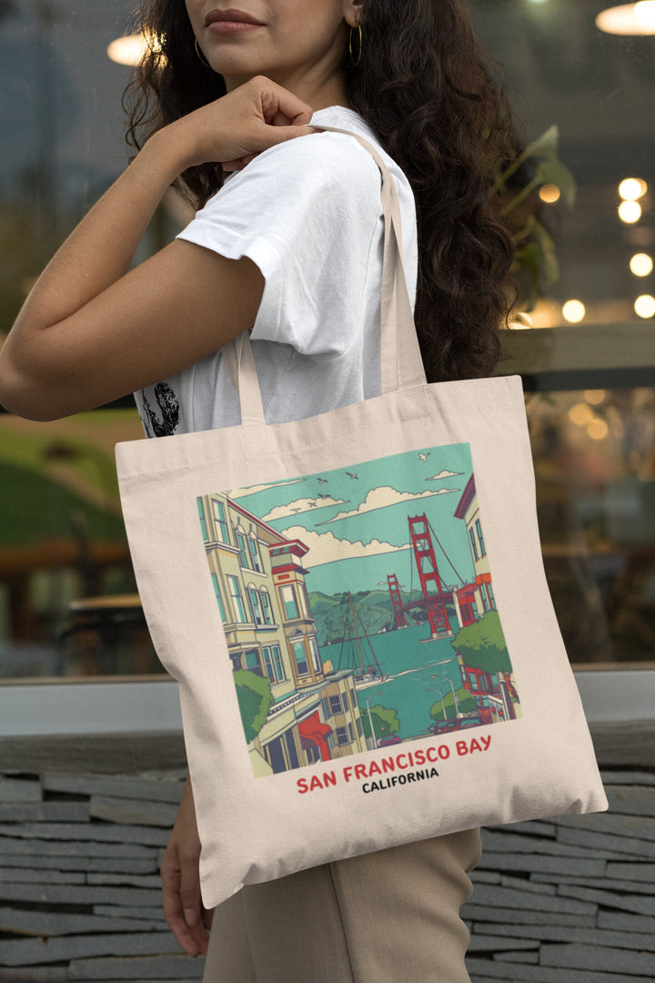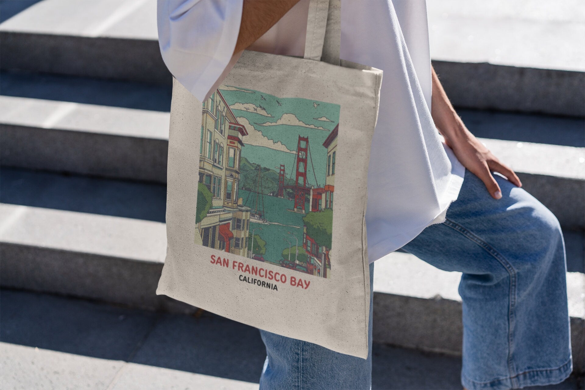 Durable and Eco-Friendly: Made with high-quality, sustainable materials, the "San Francisco Bay Tote Bag" is built to withstand the hustle and bustle of city life. Opt for this reusable bag to reduce your environmental impact while enjoying a blend of fashion and functionality.