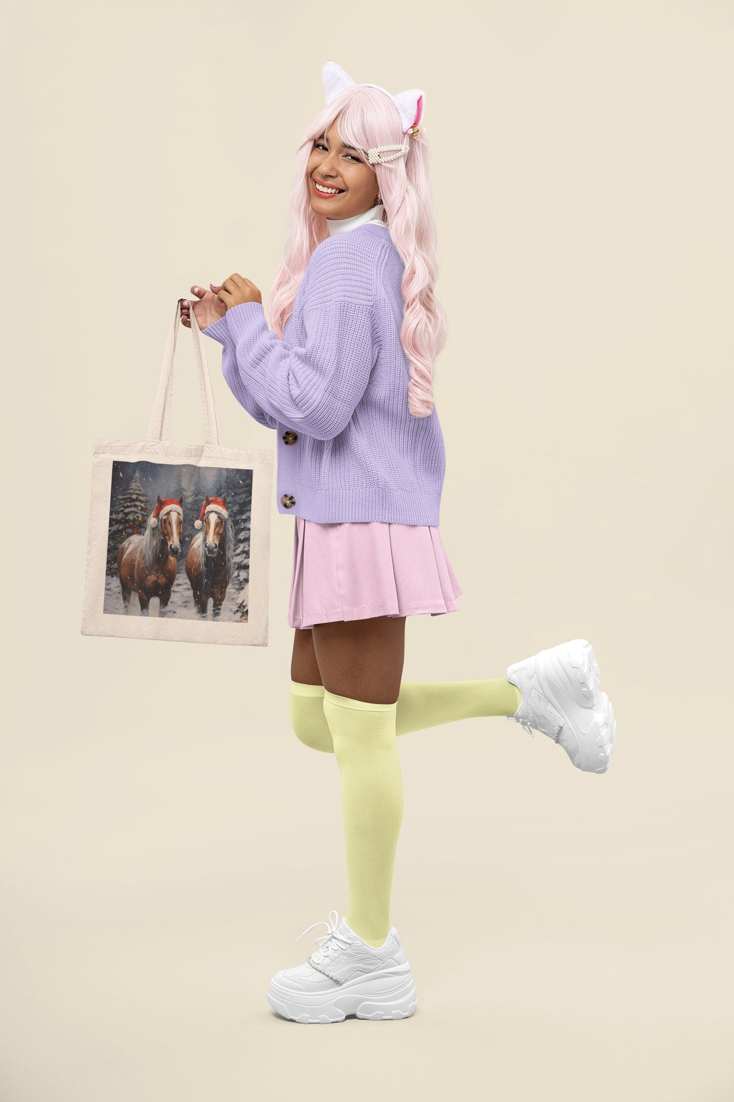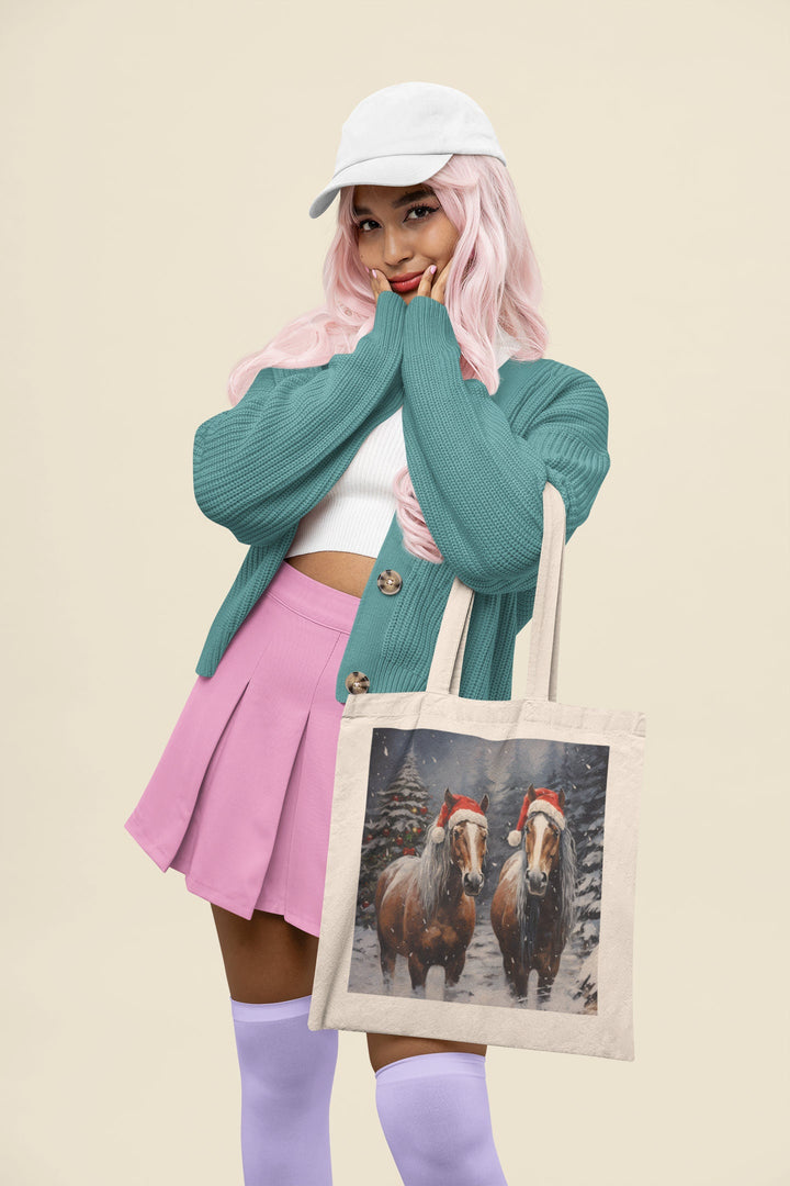 Holiday Hoofprints: Adorned with Santa's majestic horses, perhaps in mid-gallop or adorned with holiday decorations, this tote brings the fantasy of Santa's sleigh ride to life.