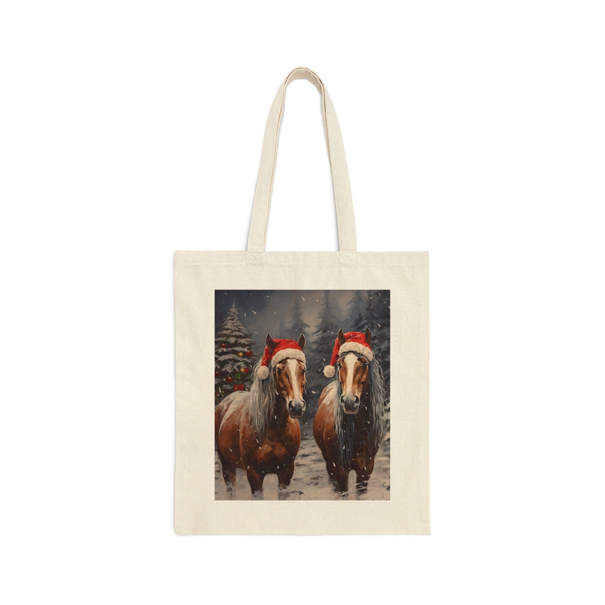 Gallop into the festive season with our Santa's Horses Tote Bag, a perfect merger of Christmas cheer and equestrian grace. This tote brings a unique twist to traditional holiday motifs, making it a standout accessory for anyone who loves the spirit of Christmas and the nobility of horses.