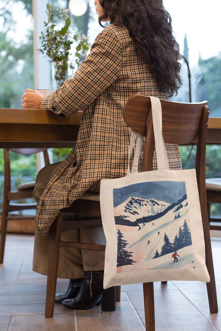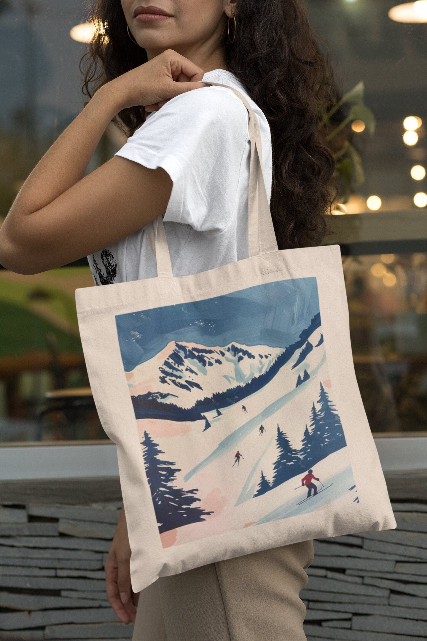 Durable and Practical: Made with high-quality materials, the "Ski Mountain Tote Bag" is built to last. It's designed to withstand the rigors of outdoor adventures and daily use, making it a reliable choice for any winter sports aficionado.