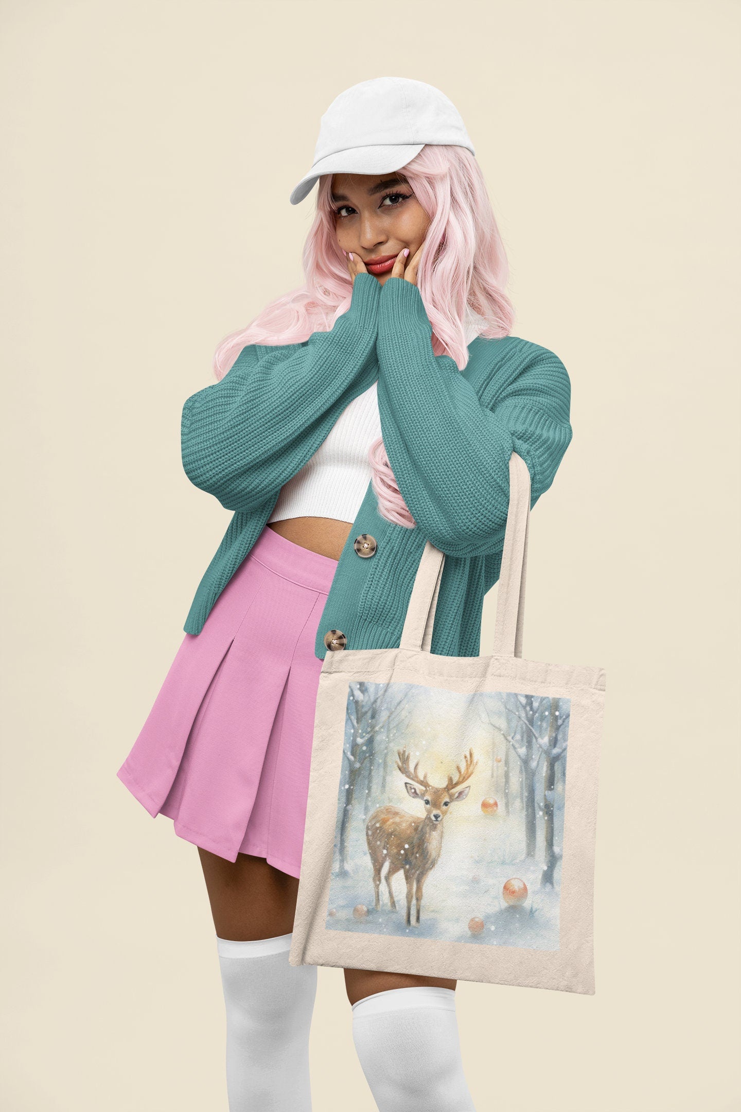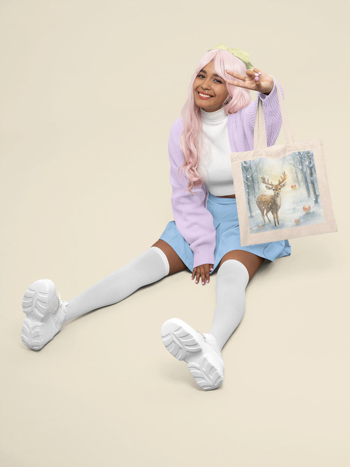 Snowy Fawn Tote Bag: Step into a Wintry Fantasy with Gentle Elegance