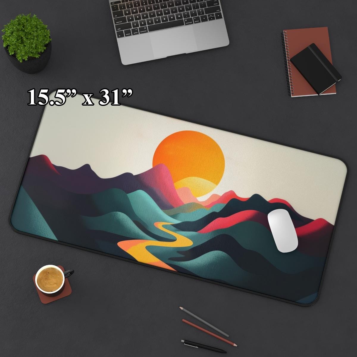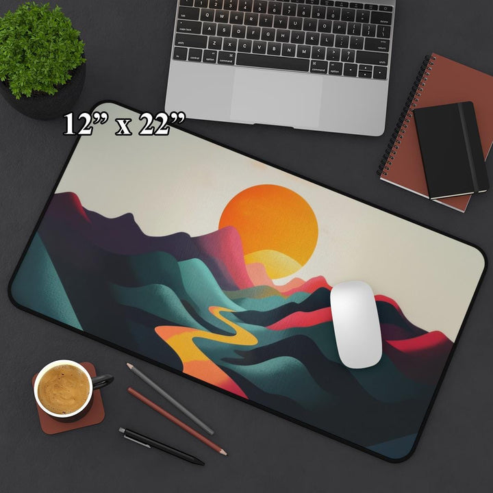 Breathtaking Mountain Sunrise Design: Showcasing a vibrant sun rising over a mountain range, this mouse pad captures the peaceful beauty of dawn, making it a stylish and uplifting desk accessory.
