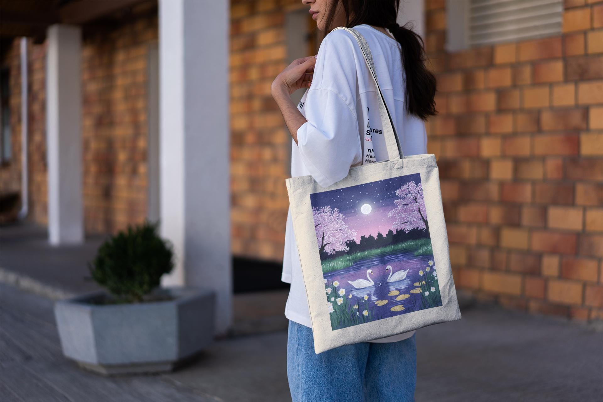 Embrace elegance and nature with the Swan Cherry Blossom Tote Bag—where gentle beauty meets everyday function.