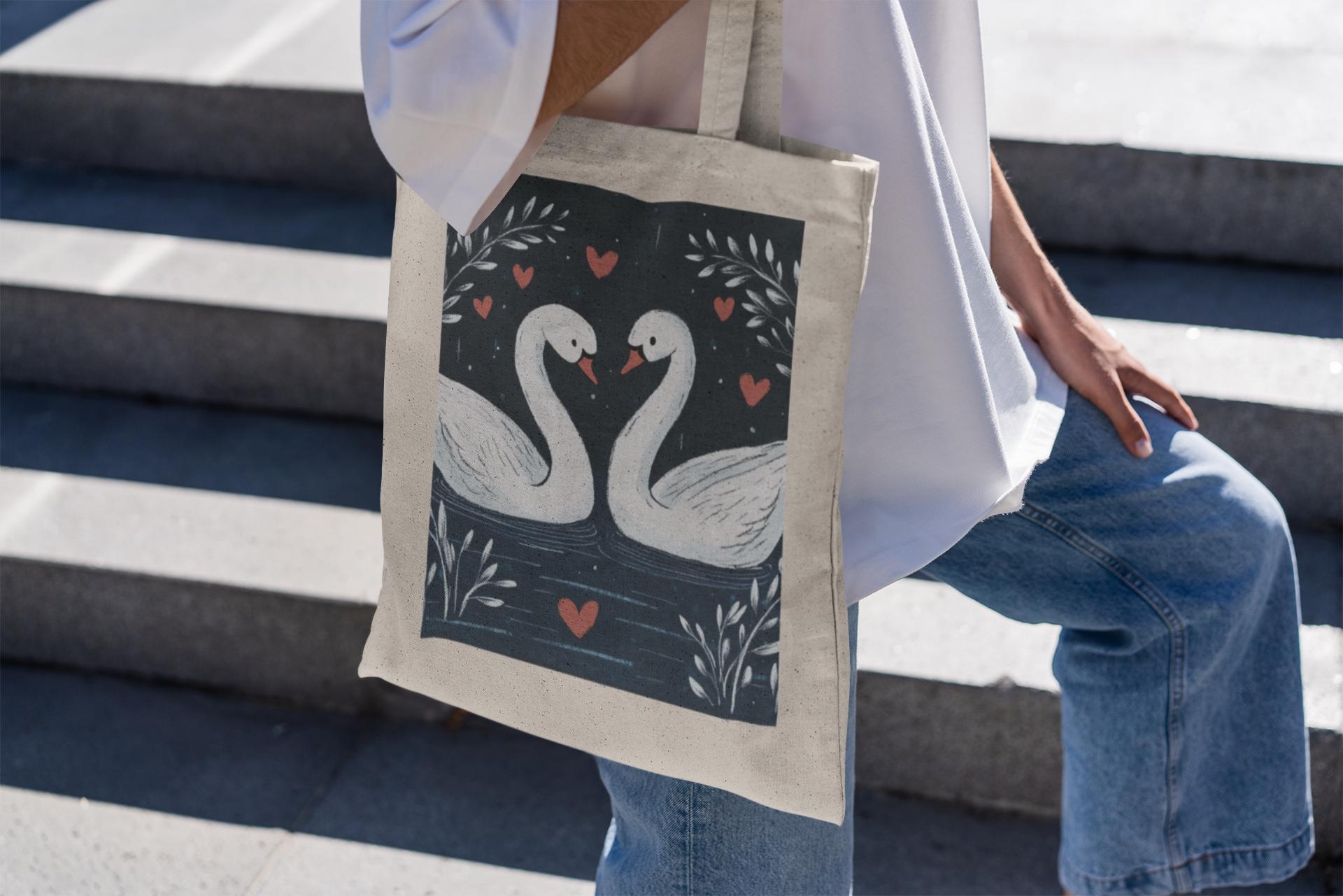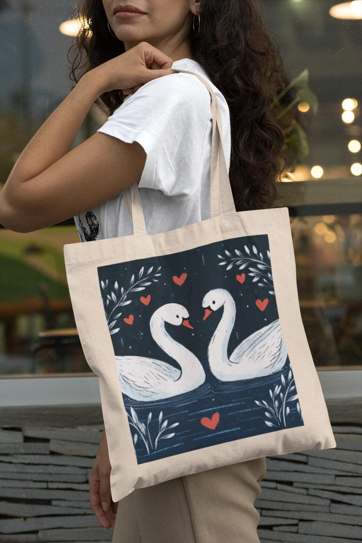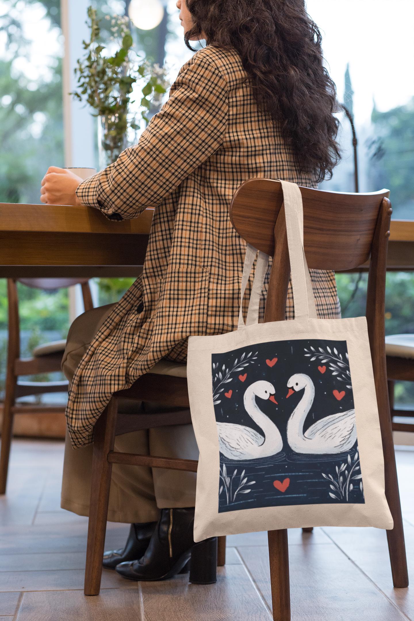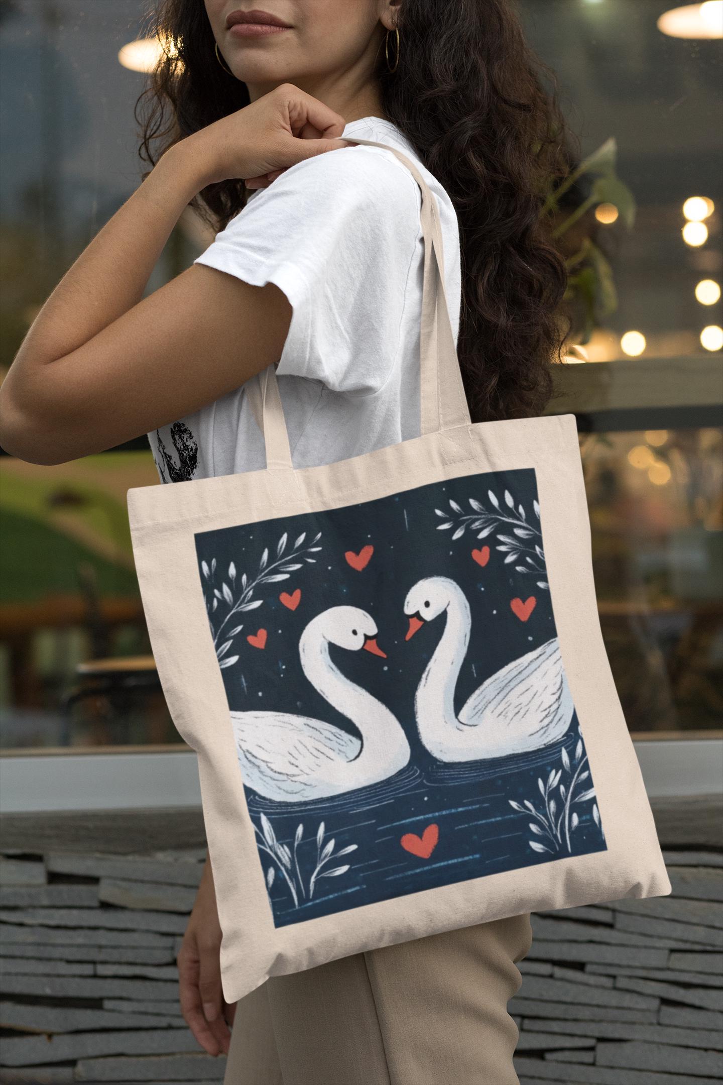 Add a touch of romance and grace to your day with the Swan Hearts Tote Bag—where beauty meets functionality.