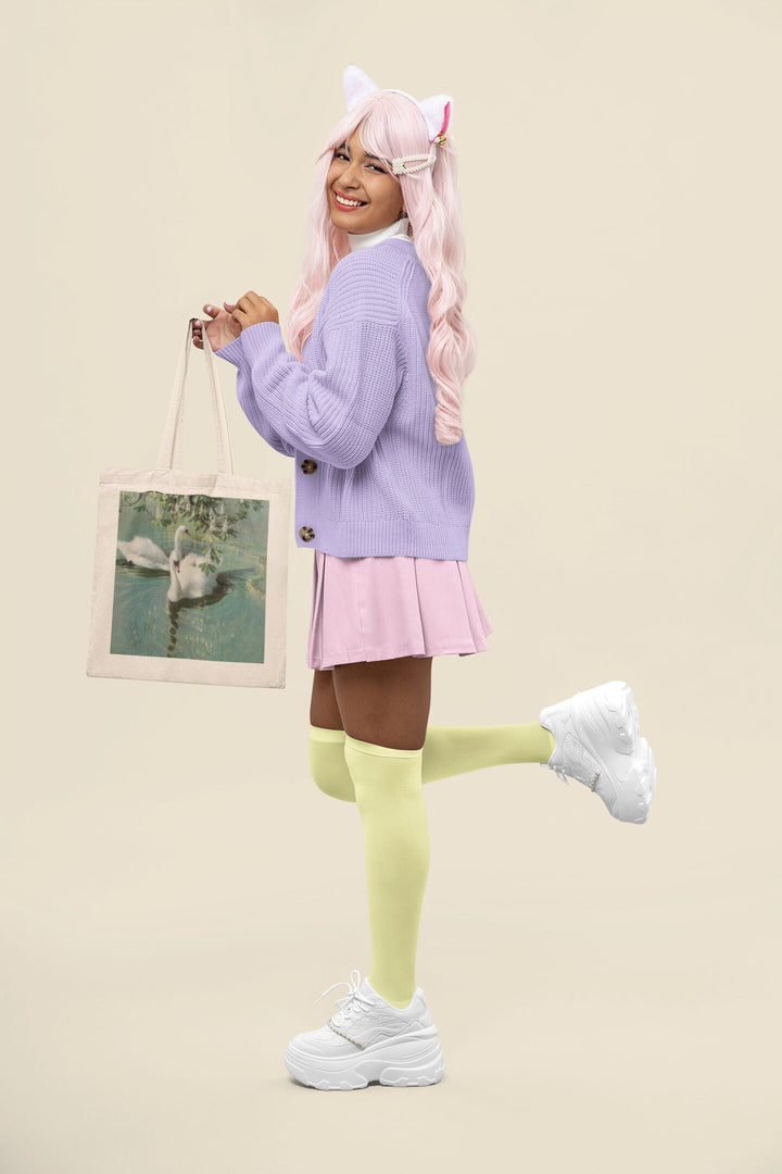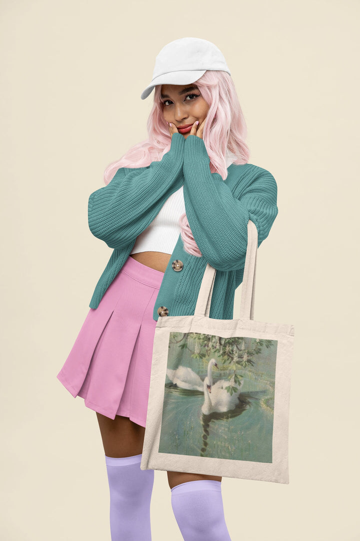 Grace your daily adventures with our Swan Tote Bag, a symphony of elegance and contemporary aesthetic appeal. Intricately adorned with cute swans, this tote not only pays homage to timeless beauty but also brings a dash of retro charm to your modern-day endeavors.