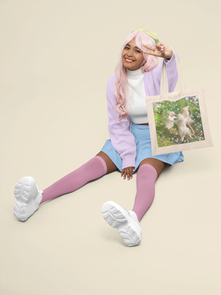 Enchanting Imagery: Adorned with cute, dancing mice, weaving a tale of joy, friendship, and uninhibited fun right on your tote.