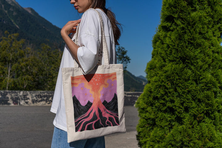 Ignite your style with the Volcano Star Tote Bag, featuring a stunning design that combines the raw power of a volcano with the serene beauty of a starry night sky. This unique tote is perfect for those who appreciate dramatic, nature-inspired art and want to make a bold statement. Ideal for shopping, work, or casual outings, it seamlessly combines visual appeal with practical functionality.