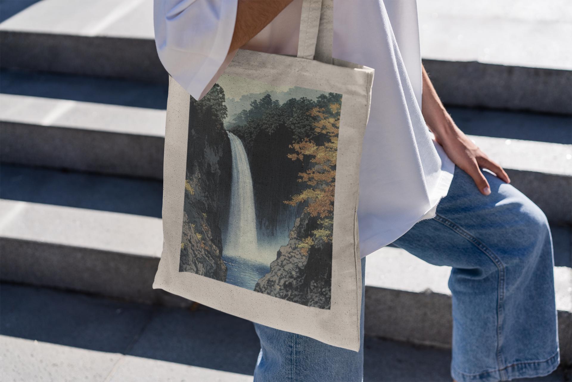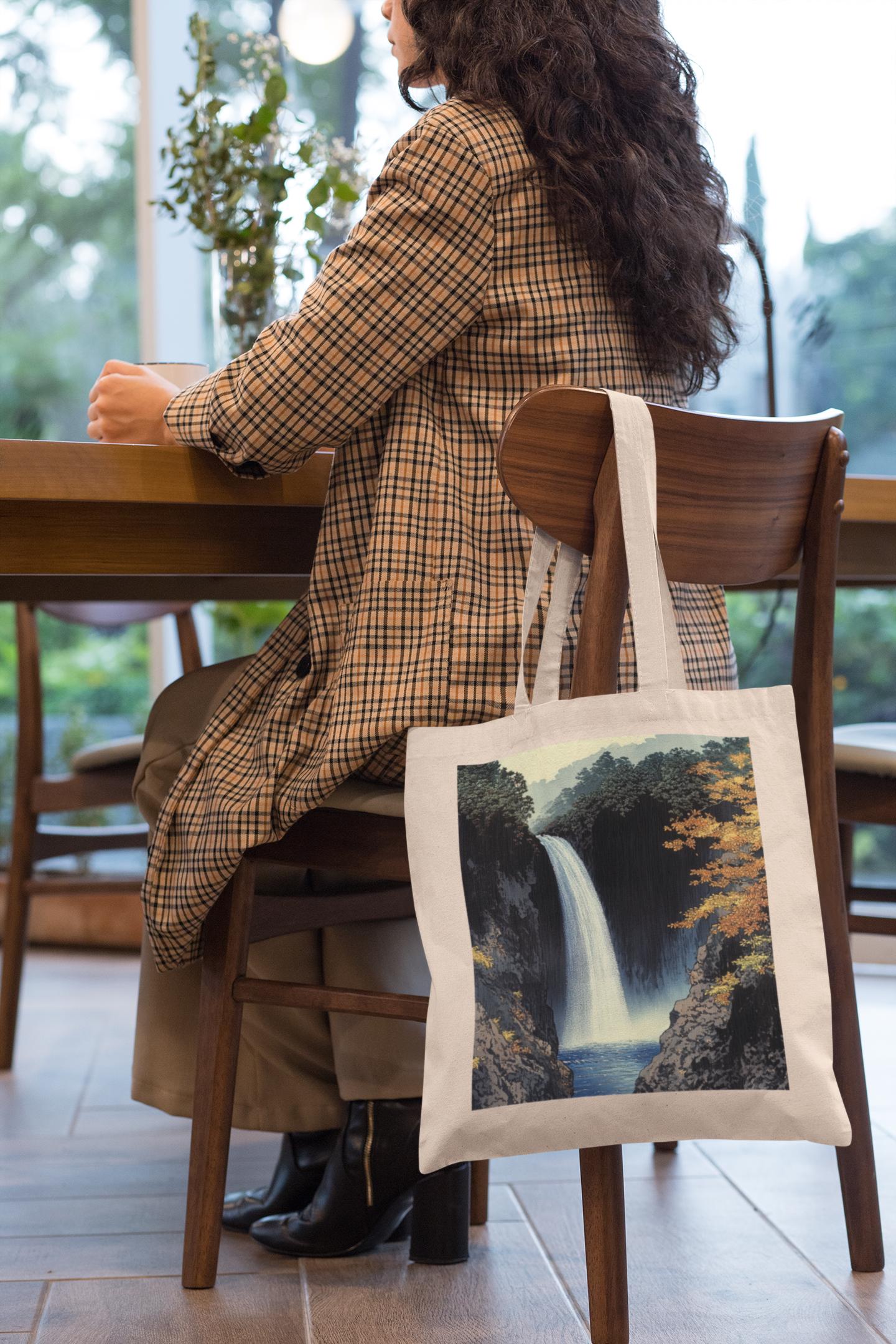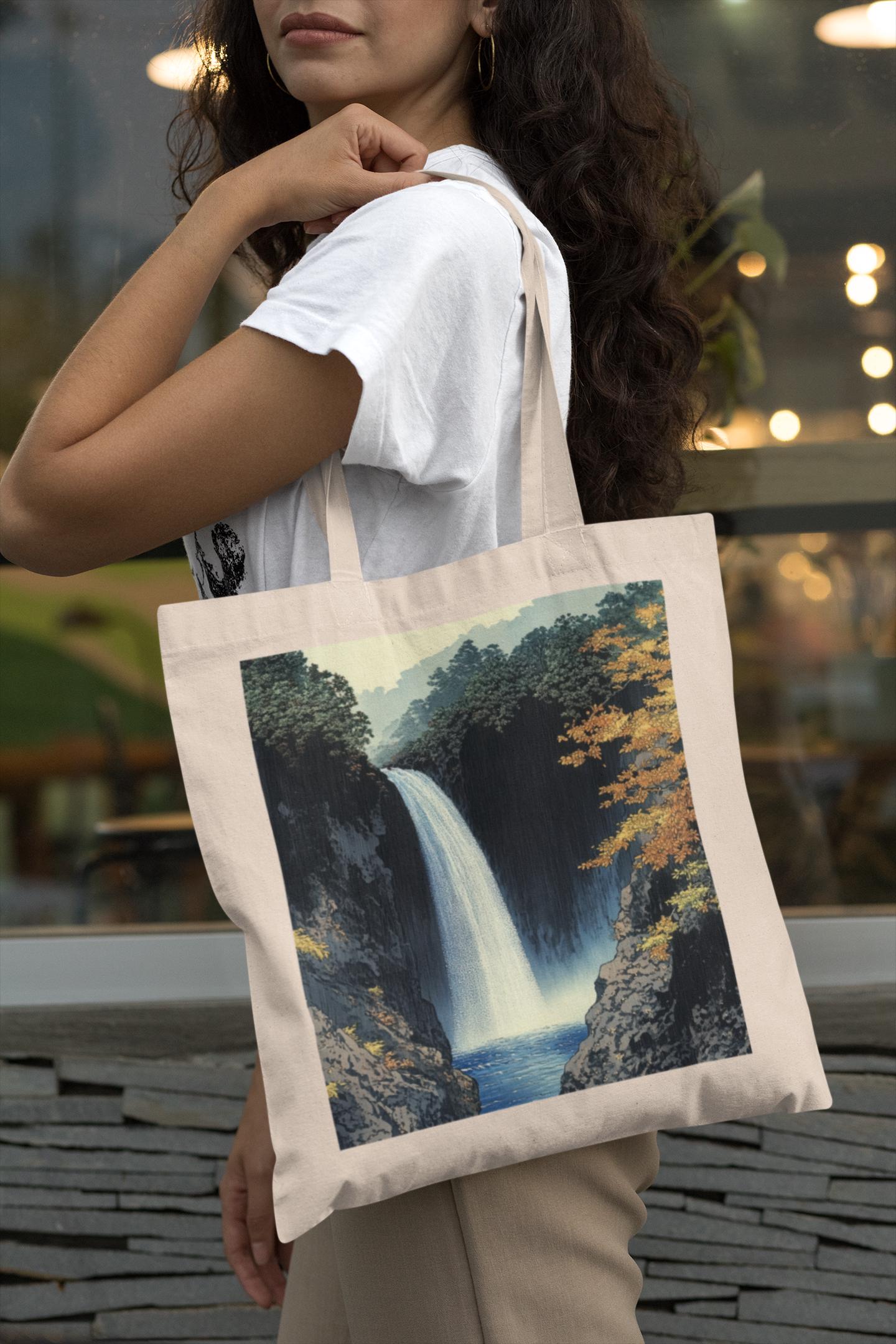 Breathtaking Waterfall Design: Showcasing a beautifully detailed waterfall scene, this tote bag brings the calming essence of nature to your everyday style.