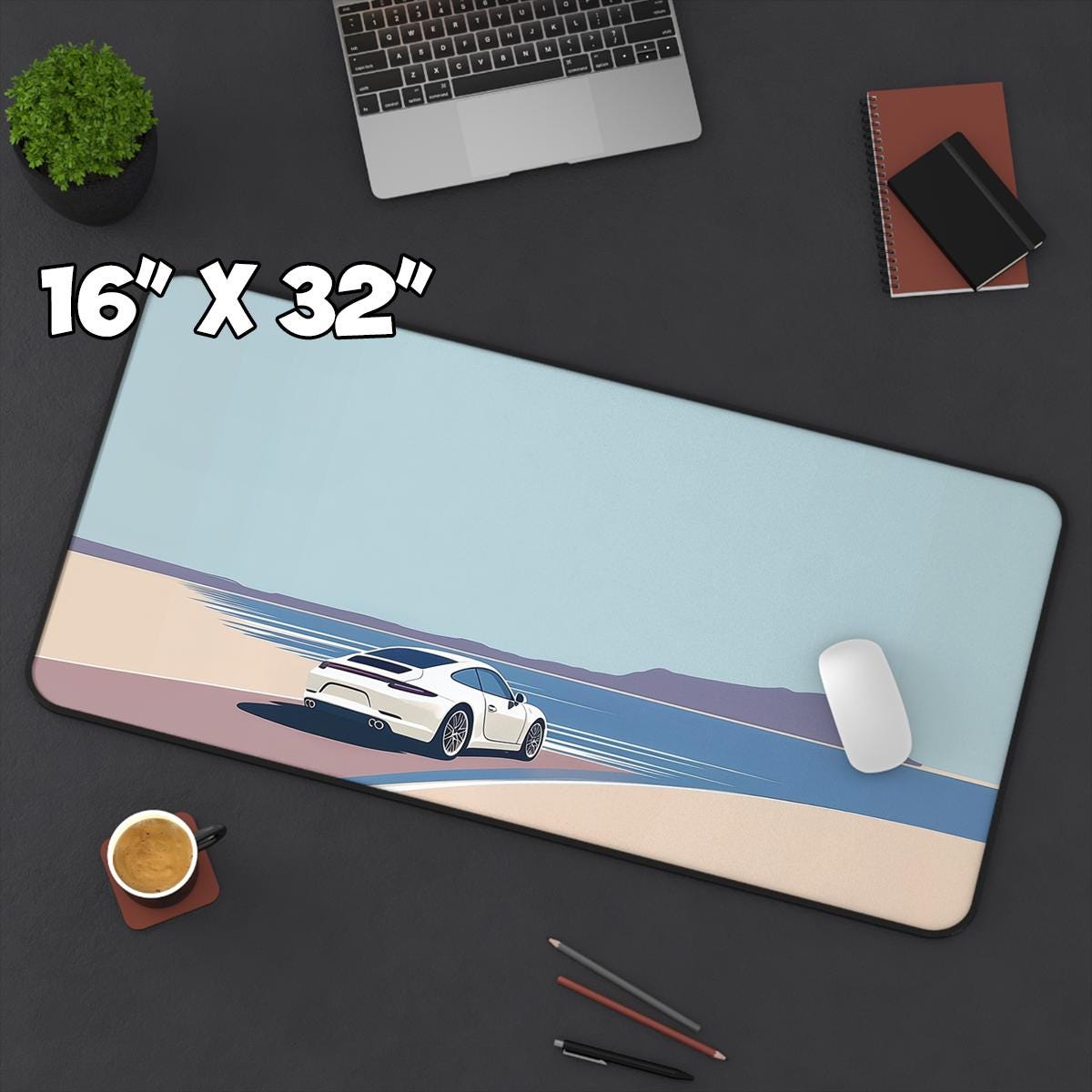 Sleek White Car Design: Adds a clean and modern automotive vibe to your desk setup.