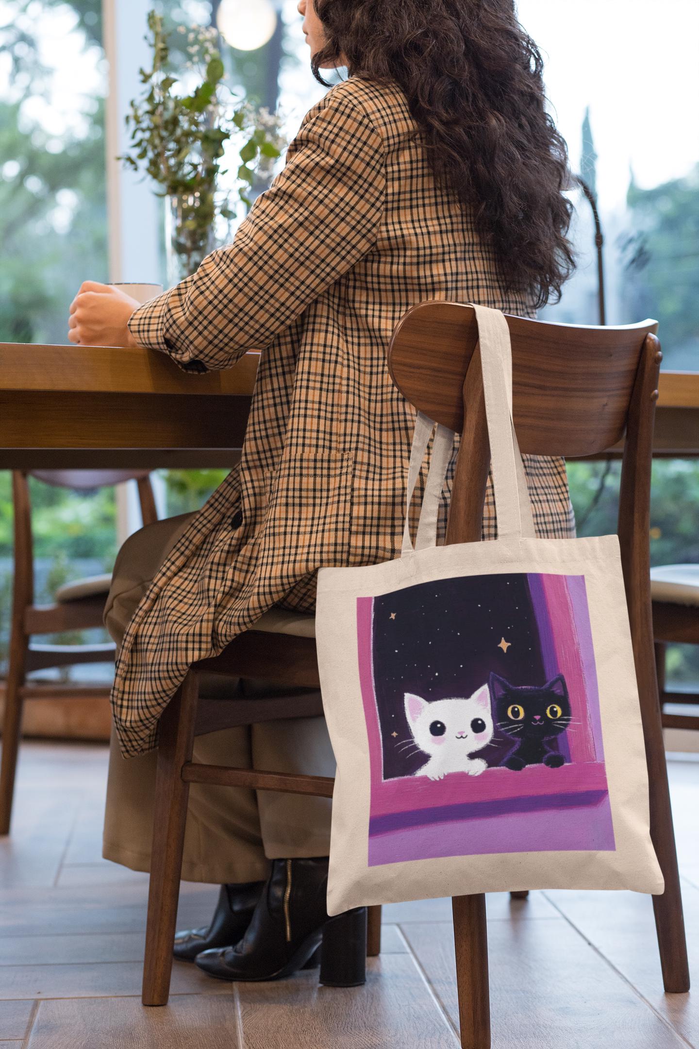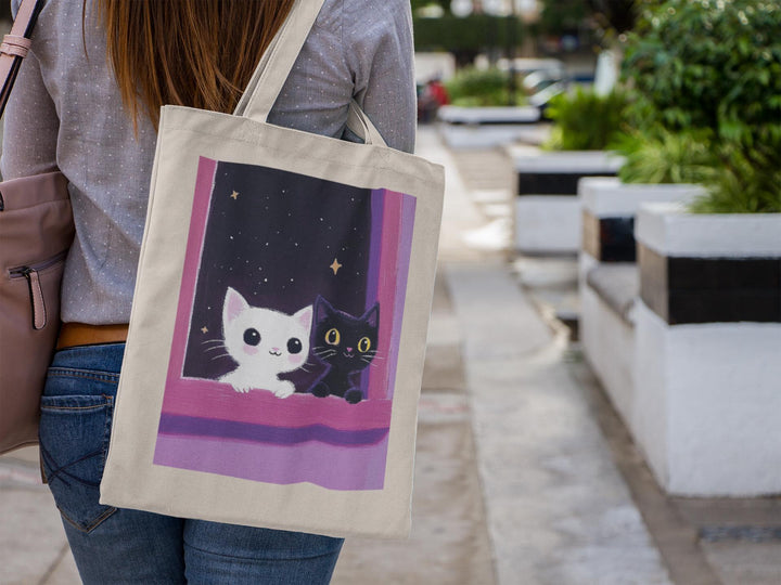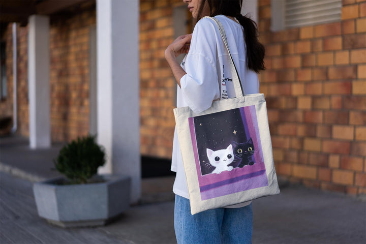 Take your favorite feline duo everywhere with the White Kitty & Black Kitty Tote Bag—where simplicity meets style.